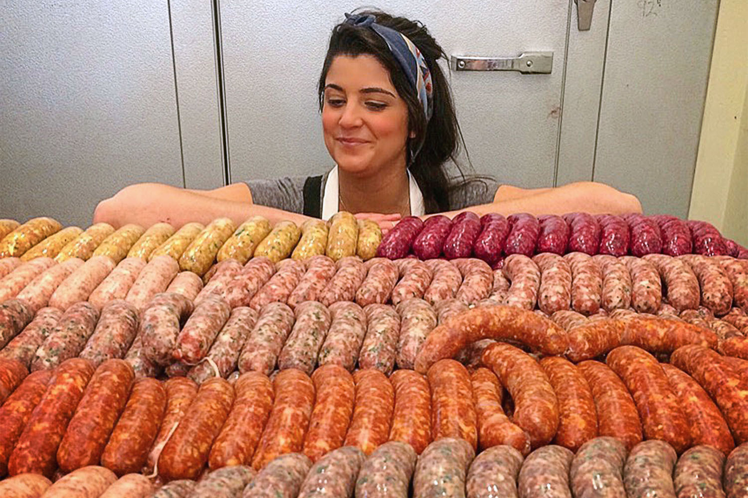 “He told me that adding fresh vegetables would make for bad sausages and, in theory, he’s not wrong,” she says. “There’s a reason that when you see a spinach-and-feta or tomato-basil sausage in the supermarket all of those vegetables are dried — scientifically it’s really hard to add large amounts of watery vegetables to sausage and still have it taste and feel like a delicious sausage. I spent about 12 years figuring out ways around that science, and Seymour is our biggest fan. He gets a real kick out of our flavor variety. It’s really rare these days to have a family trade that gets passed down across generations, so I feel incredibly lucky to be able to continue my family’s legacy in a new way.”