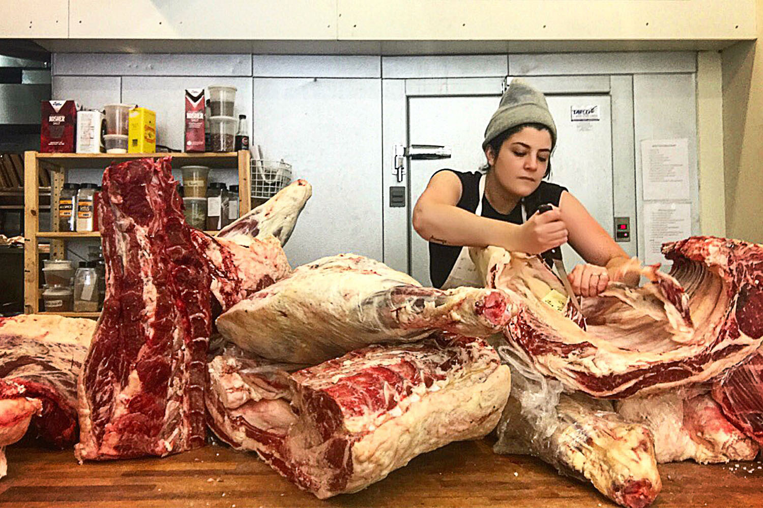 A fourth-generation butcher whose great grandfather Jack Salett first opened his own shop in Boston’s North End in the 1940s, Cara Nicoletti grew up in and around the meat industry but didn’t step behind a chopping block until she started apprenticing at the Meat Hook in Williamsburg in between working shifts at nearby Pies ‘n’ Thighs.