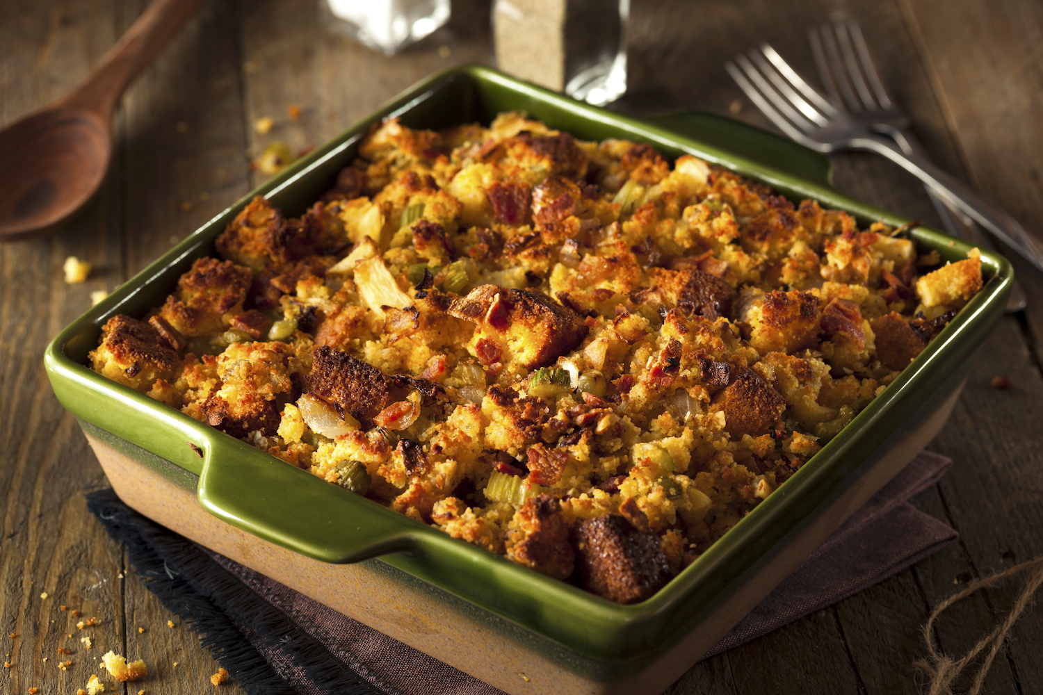 Like the choices for topics to argue about while sitting around the table consuming turkey, cranberry sauce and mashed potatoes, the preparation options for making stuffing to complement those Thanksgiving favorites and accompanying arguments are nearly limitless. Stuffing, which ranks ahead of mashed potatoes and mac ‘n’ cheese as America’s favorite side according to a recent study by Shipt, can be prepared in the bird or cooked on the stovetop, as the late home economist Ruth Siems first did in the 1970s. It can even be crammed into a suckling pig with small birds, just like Roman innovator Marcus Gavius Apicius did in the first century A.D. when he created the great, great grandfather of the Turducken.