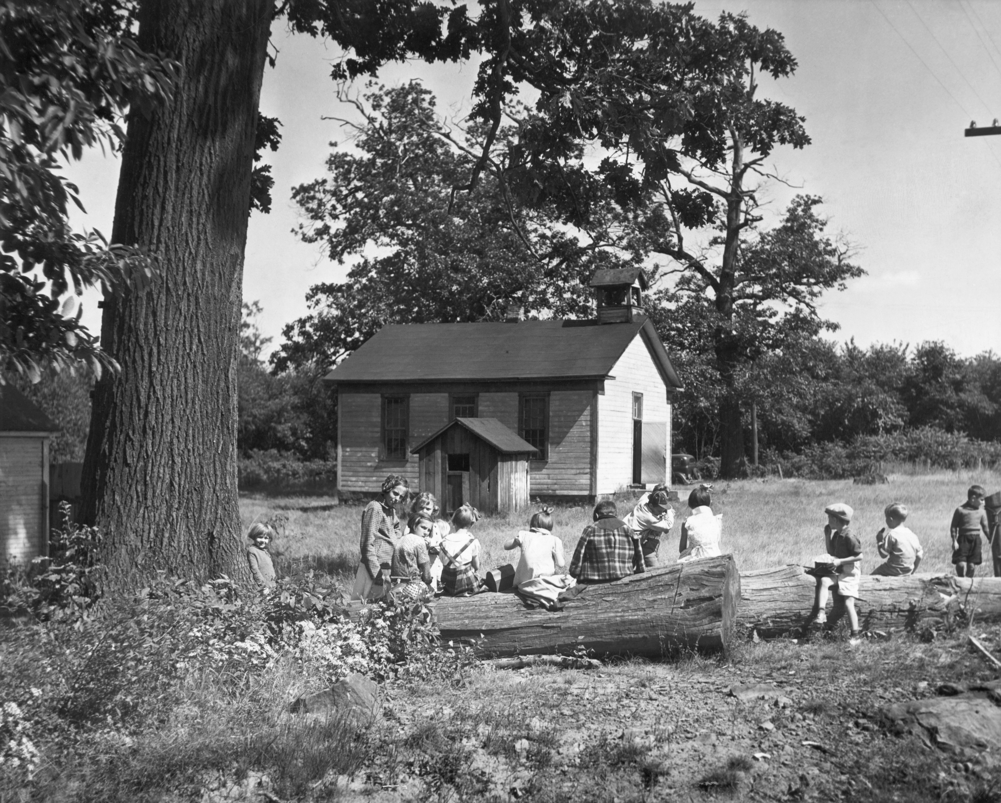 Children eating lunch outdoors at a school in Clyde, Pennsylvania during the 1920’s. (Bettmann/Getty Images)