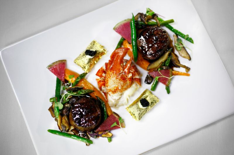 It’s all anchored by one dish — The Land & Sea — which will set you back a cool $250. The upgraded iteration of the crowd favorite boasts a duo of wagyu beef in black truffle sauce and poached Maine lobster in a white beurre Blanc, all served alongside gold covered pomme soufflé, creme fraiche, and Petrossian caviar. And don’t forget to wash it all down with a cocktail.