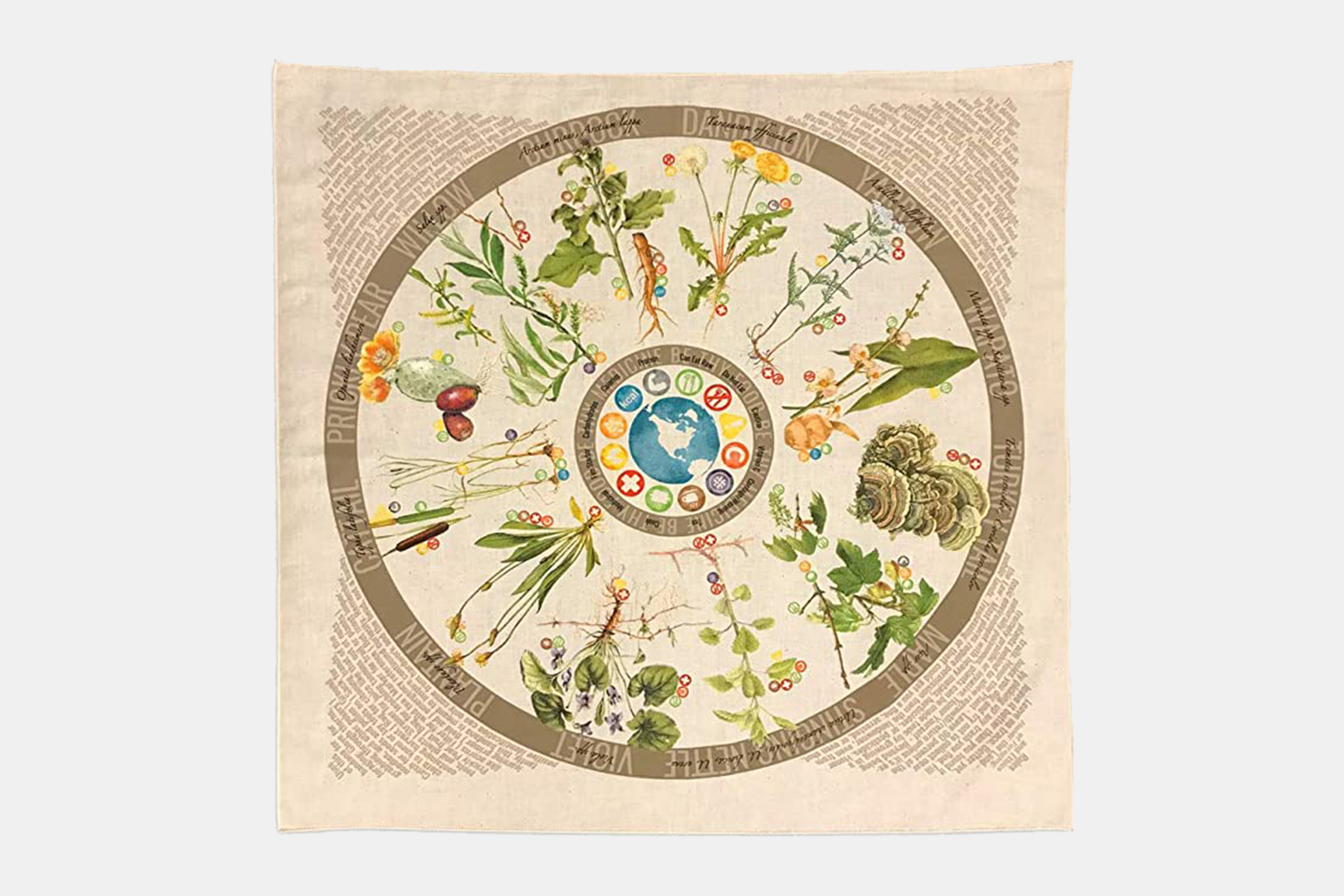 While we wouldn’t recommend using this foraging guide — which includes 12 plants and fungi found in North America, their uses, as well as some info on identifying edible foliage — as your only source of info when you head out into the wild, it is one of the best looking bandanas on this list.