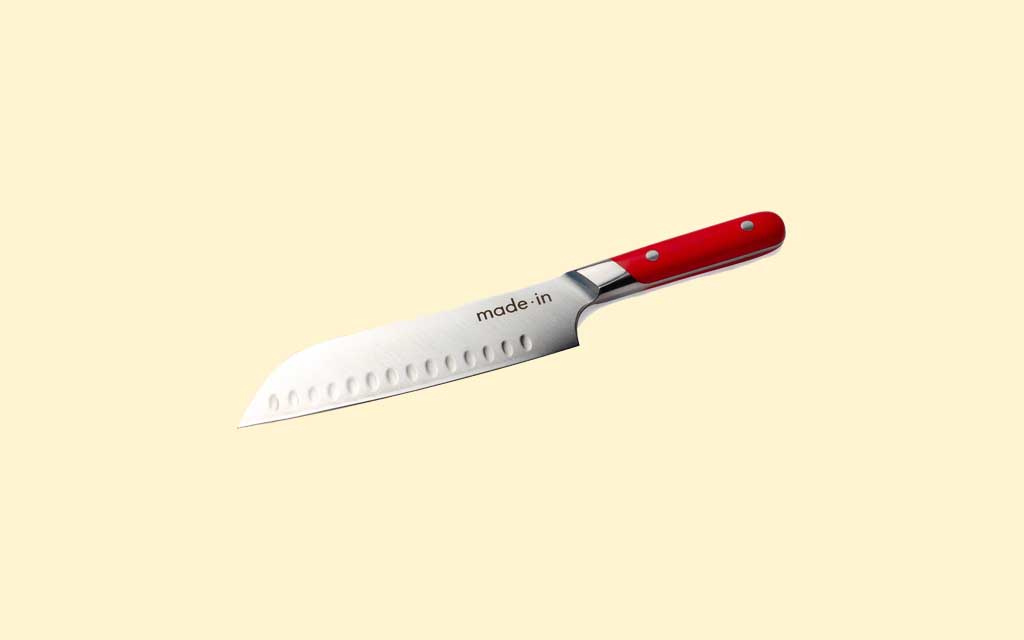 The 7 Inch, nitrogen-treated stainless steel Santoku Knife from Made In is the multi-kitchen tool he needs in his cooking arsenal, guaranteed to finely slice, dice and chop all the meat, fish, vegetables and fruit he can handle.