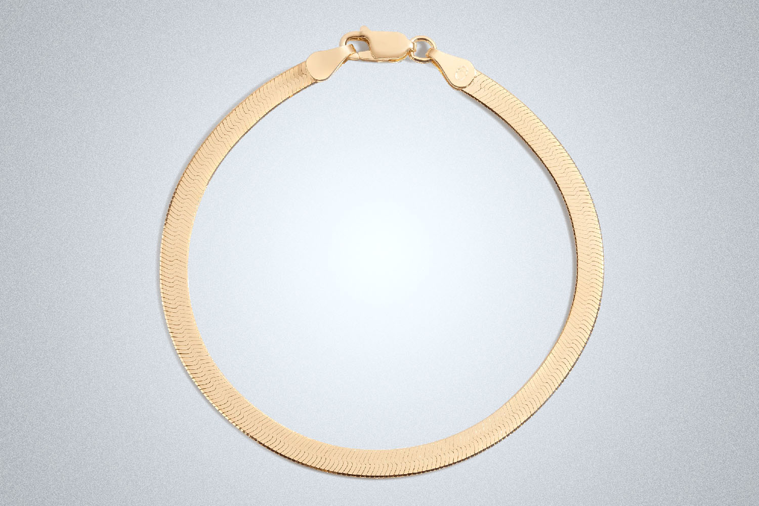 She needs a sturdy bracelet to hold all of her precious charms. Mejuri’s semi-chunky, stainless steel chain is our pick, as it looks good by itself or layered with baubles.