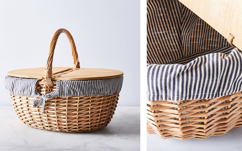 Arguably the most important aspect of a picnic is the picnic basket, and this wicker one with a blue and white stripe lining is about as picnic basket-y as it gets. For those looking to fully embrace the activity and be the envy of all other picnickers nearby, this is the way to go.