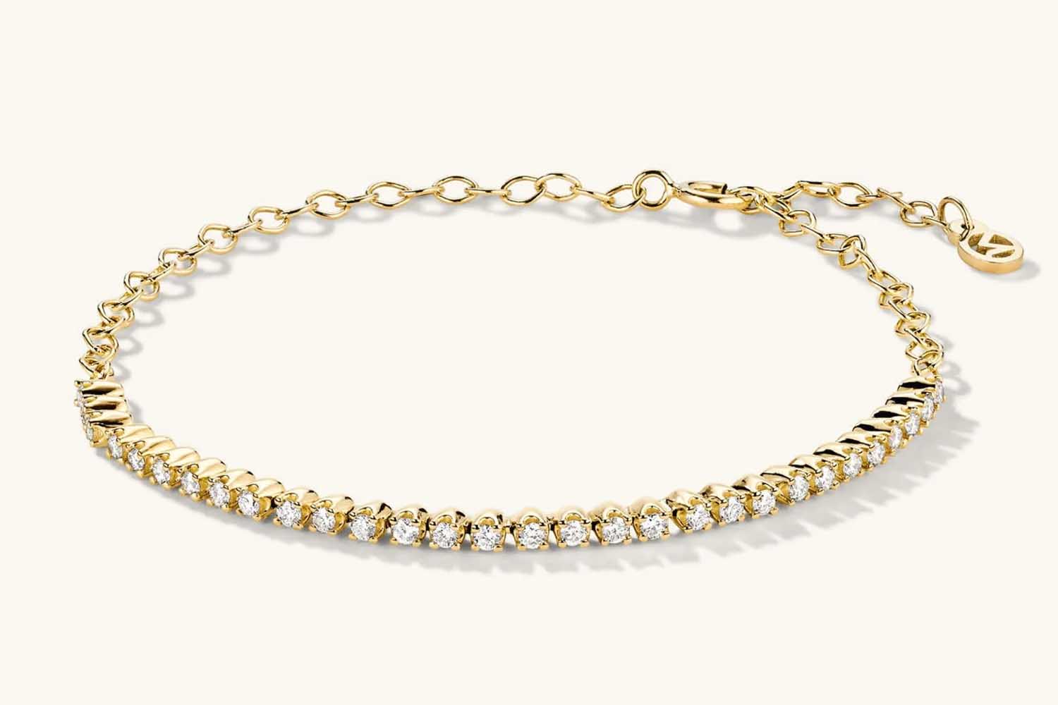 A half tennis bracelet is the perfect mix of sparkle and subtlety. This dainty accessory from Mejuri is crafted in 14k solid gold and features responsibly sourced, glistening diamonds.
