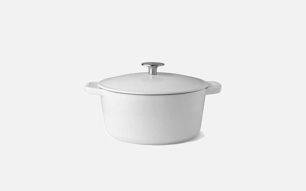 A heritage-quality cast iron known for its strength and durability that has superb heat retention and distribution. Plus the polished enamel is pretty stunning (kinda like her).
