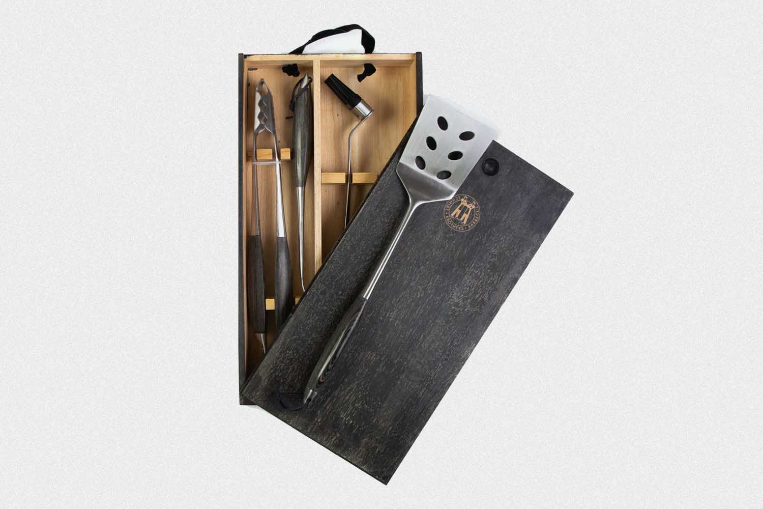 A spatula, a fork, tongs and a basting brush: four items any serious grillmaster needs to have at his disposal while grilling. This set from Schmidt Brothers, via Huckberry, comes in a nice wooden box and features tools that feel every bit as substantial in your hand as you want them to feel, giving you the sense you’ll be using them for years and years to come.