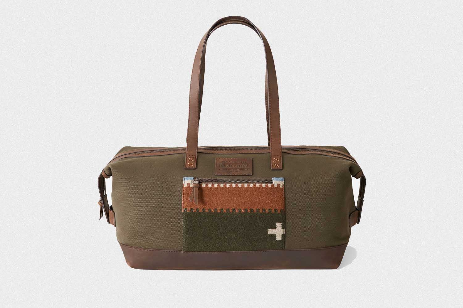And in keeping with the “don’t look like a child” theme, we recommend heritage Portland makers Pendleton, who offer a number of hard-wearing canvas and wool bags that feature a sturdy leather handle and two interior slip pockets for his personal effects.