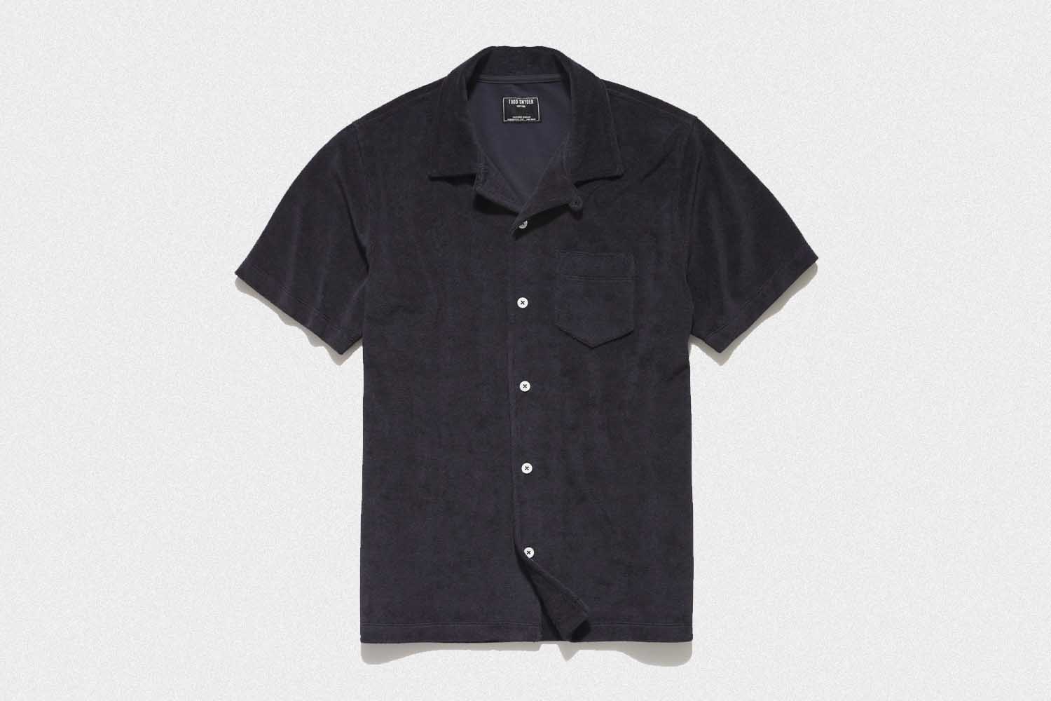 There’s been a noticeable proliferation of terry cloth in menswear of late, and while we can’t say we totally understand it, we are very curious. Here it’s used for a button-down polo, which admittedly is a bit of a misnomer: it looks more like a club-collar shirt with a full-button placket, and we’re thinking it would look really, really cool over — hear us out — a white tank top. (We were going to say “over a white tank top while grilling,” but we’re now thinking terry cloth might absorb food odors in a potentially unpleasant way. So maybe make sure someone else is manning the grill.)