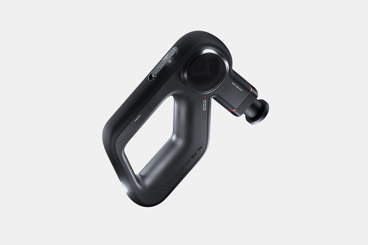 The KraftGun Force is a lightweight, noise-free, ergonomically-shaped recovery device powered by a Samsung battery. It touts three different speeds, offers three different attachments and only needs to be charged once a month.