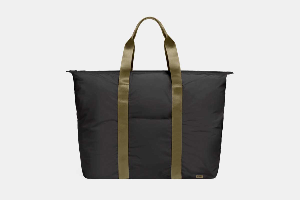 A backpack, carry-all and sling bag crafted from lightweight, water-resistant, recycled nylon — so they’ll survive the elements and most importantly, not take up a lot of room. Each bag here folds into a tiny zip pouch when not in use.
