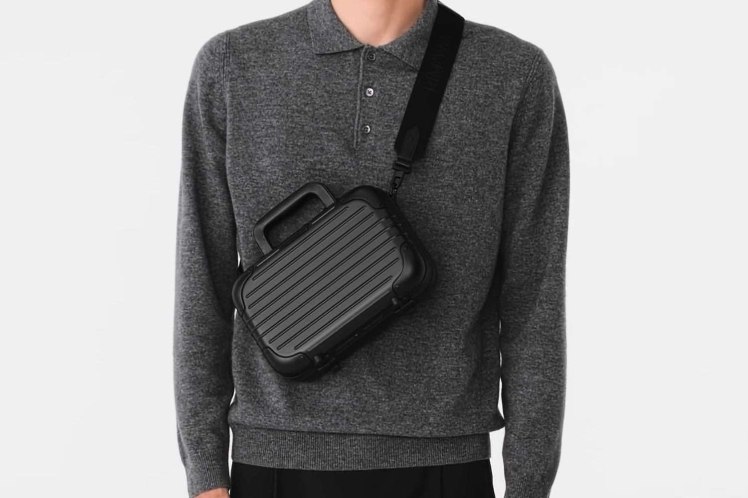 Ever look at a hefty aluminum carry-on and think, “I wish this were a crossbody bag?” No? Rimowa doesn’t care — the German Maison is releasing a miniaturized version of their instantly recognizable grooved luggage anyway. The new Original Aluminum Cross-Body Bag (currently available in classic Rimowa chrome and a sleek black) features the same top-of-the-line specs — color-matched leather interior, logo badge, quick-open locking system — in a 2.4-pound package, with a leather handle and detachable body strap to tote how you see fit. The JSX lounge won’t know what hit ‘em.