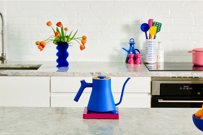 An electric kettle doesn’t need to be beautiful, but isn’t it better this way? Great Jones collaborated with Fellow on this Stagg EKG Pro electric kettle in the brand’s signature blueberry with pops of raspberry and mustard for a fun play on primary colors. Not only is she gorgeous on the outside, but her personality shines with a precision spout for pour-overs, built-in temperature control system and configurable options like scheduling and altitude.