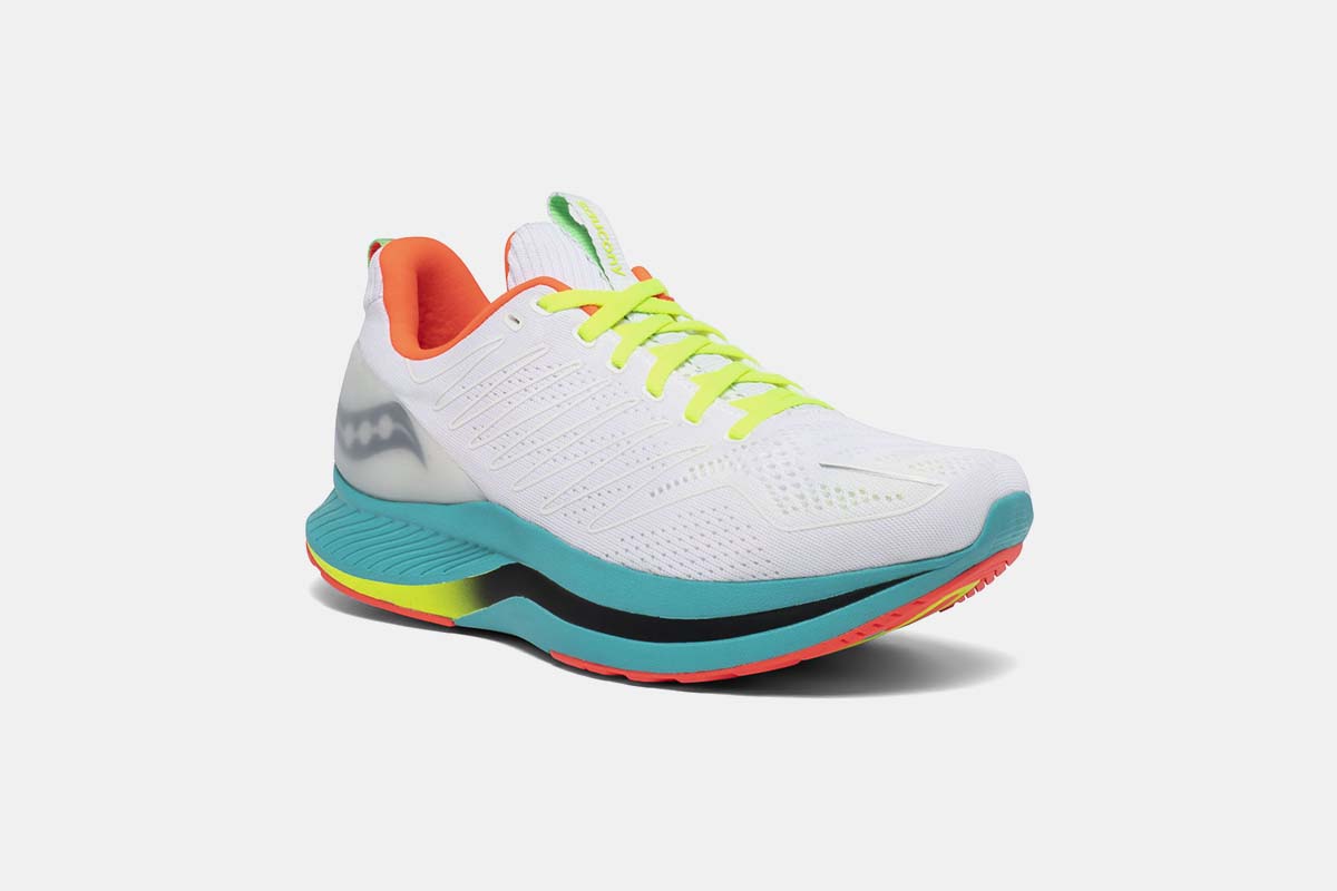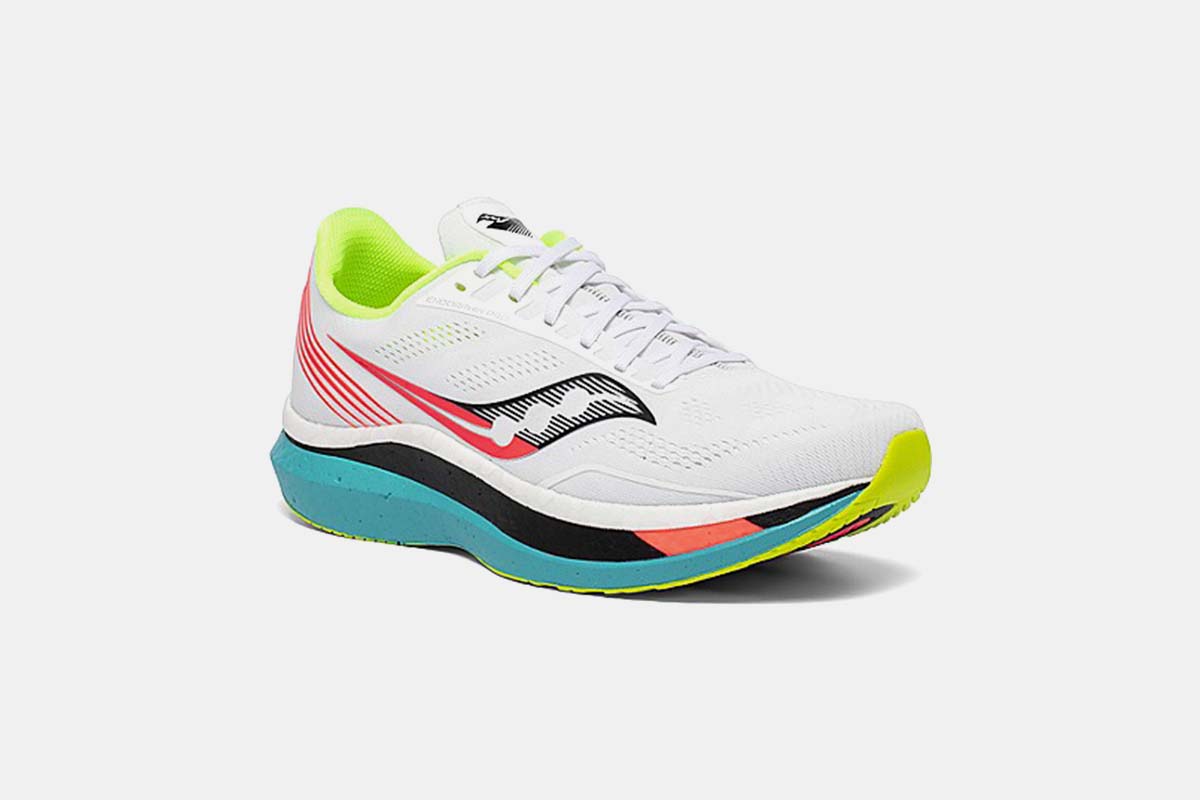 As fun as it is to lace that shoe up, though, it’s impractical and unsustainable to run in too frequently during training. It’s best deployed for occasional time trials and track workouts, or saved for the day of a road race. For the not-so-sexy, mileage-building work, then, the other entries in Saucony’s Endorphin Collection are crucial. The Endorphin Shift and Speed also went through extensive testing with Saucony athletes — by the Boston brand’s own account, nearly 5,000 miles put on 25 different prototypes — and work well as options for everyday running and speed days, respectively.