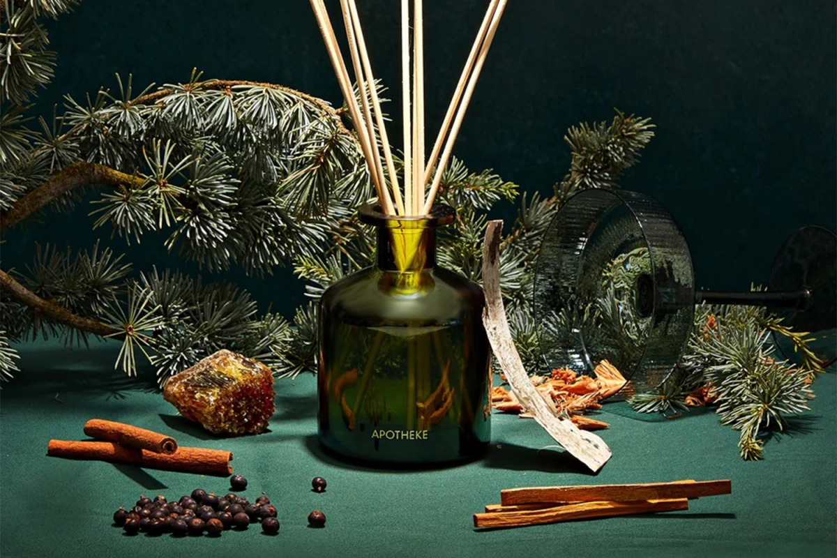 Brooklyn-based Apotheke, known for hand-poured candles made in their Red Hook factory, has also garnered a devoted following for their reed diffusers. The holiday collection never disappoints, and Juniper Birch is essentially a Christmas tree in a bottle. Crisp juniper berry and fresh fir balsam mingle with spicy white pepper and clove notes, while woodsmoke, birchwood and amber add depth and coziness. Presented in a green container with a festive, stained-glass vibe, it embodies the season with understated elegance and charm.