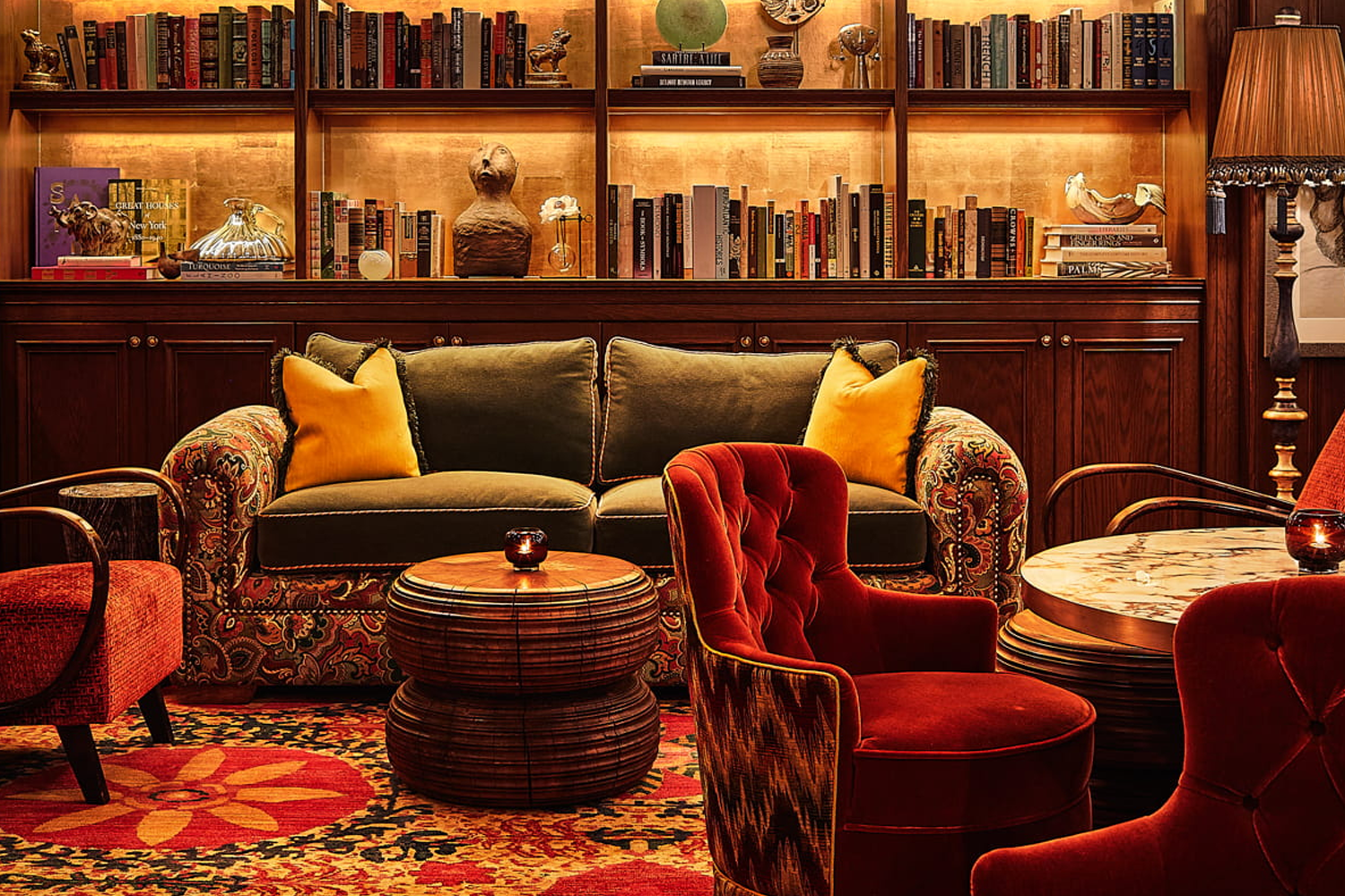 The Fifth Avenue Hotel in Midtown Manhattan’s NoMad neighborhood has a vibrant sense of style. It’s colorful and ornate, mixing lived-in history with a contemporary sensibility. It has personality. Flair. Whimsical spaces are filled to the brim with artwork, eye-catching wallpaper, ornate chandeliers and colorful light fixtures, and show-stopping, antique-grade furniture pieces, along with textures, layers and contrast galore. Guests are meant to explore and discover its sensory-rich environment, creating a real sense of awe and fascination.