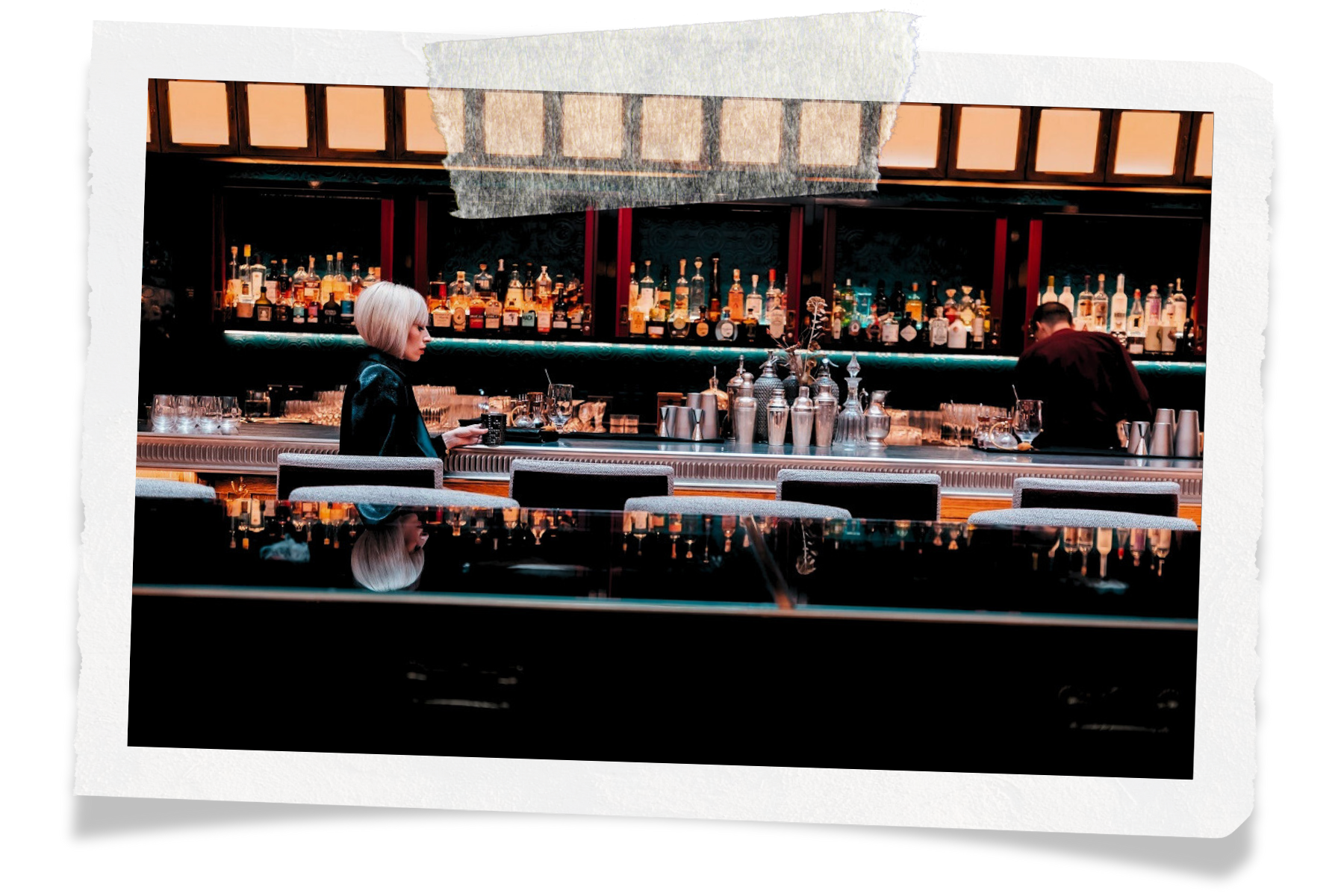 - The 40 Elephants bar: This bar is inspired by the Forty Elephants, an all-female London crime syndicate active from the late 19th century to the 1950s that primarily robbed high-end stores and wealthy households. The art deco design is an incredibly cool nod to the gang’s peak era, and the centerpiece of the bar is a chandelier made of broken glass shards, a subtle reference to the Forty Elephants’ crimes. Even the drink menu adheres to the theme, with cocktails inspired by gang leaders like Alice Diamond. I had the “Alice in Wonderland,” made with Ketel One, Aperitivo Per Se, melon and chocolate.