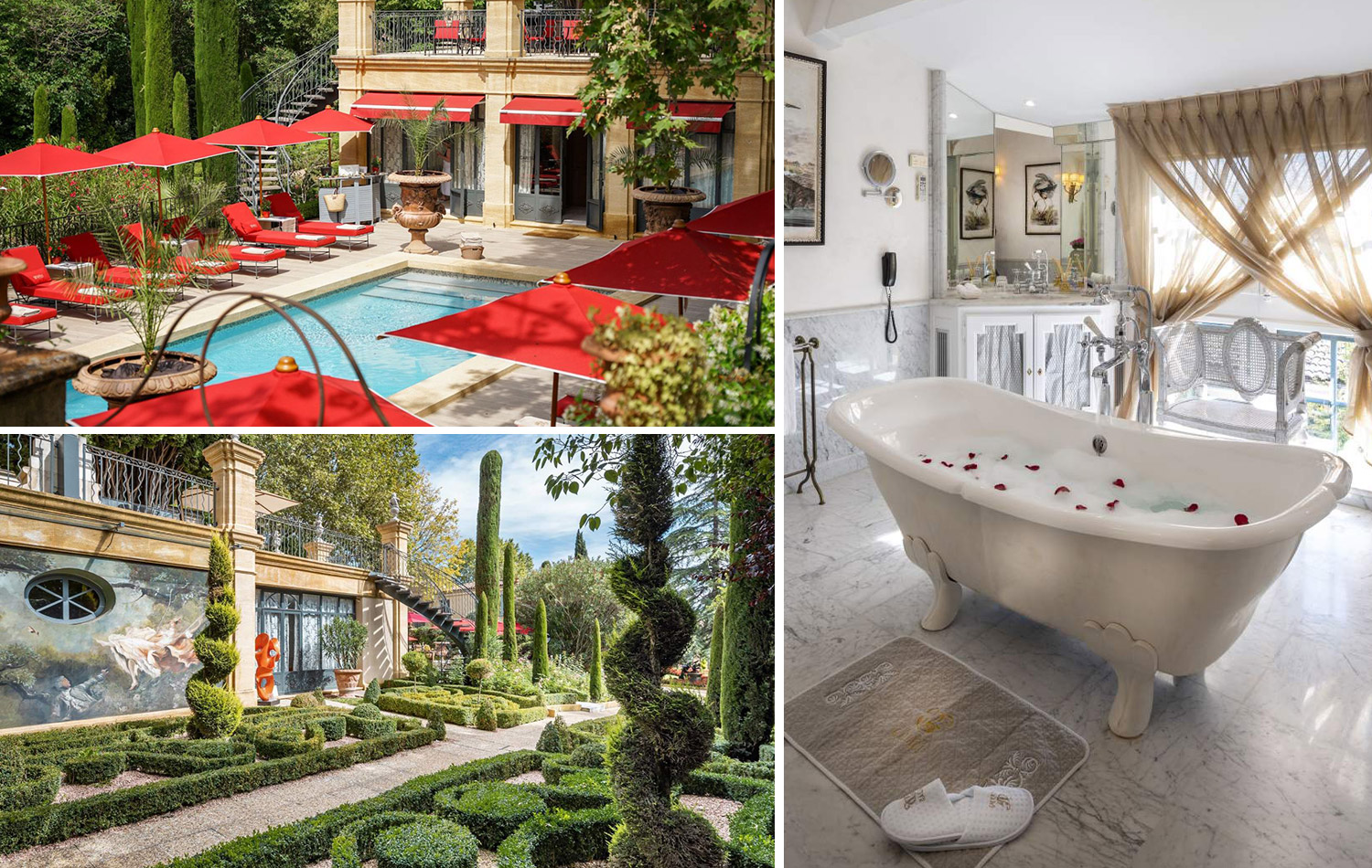 Featuring a pool terrace with loungers and a sculpture-accented private garden, Villa Gallici, a member of Relais & Châteaux, is the perfect spot to soak in the Provençal sun. Even on the occasional ogvercast day, the opulent interiors are an elegant place to pass the hours while staring at the glimmering chandeliers and lounging on the sumptuous furnishings. — LC