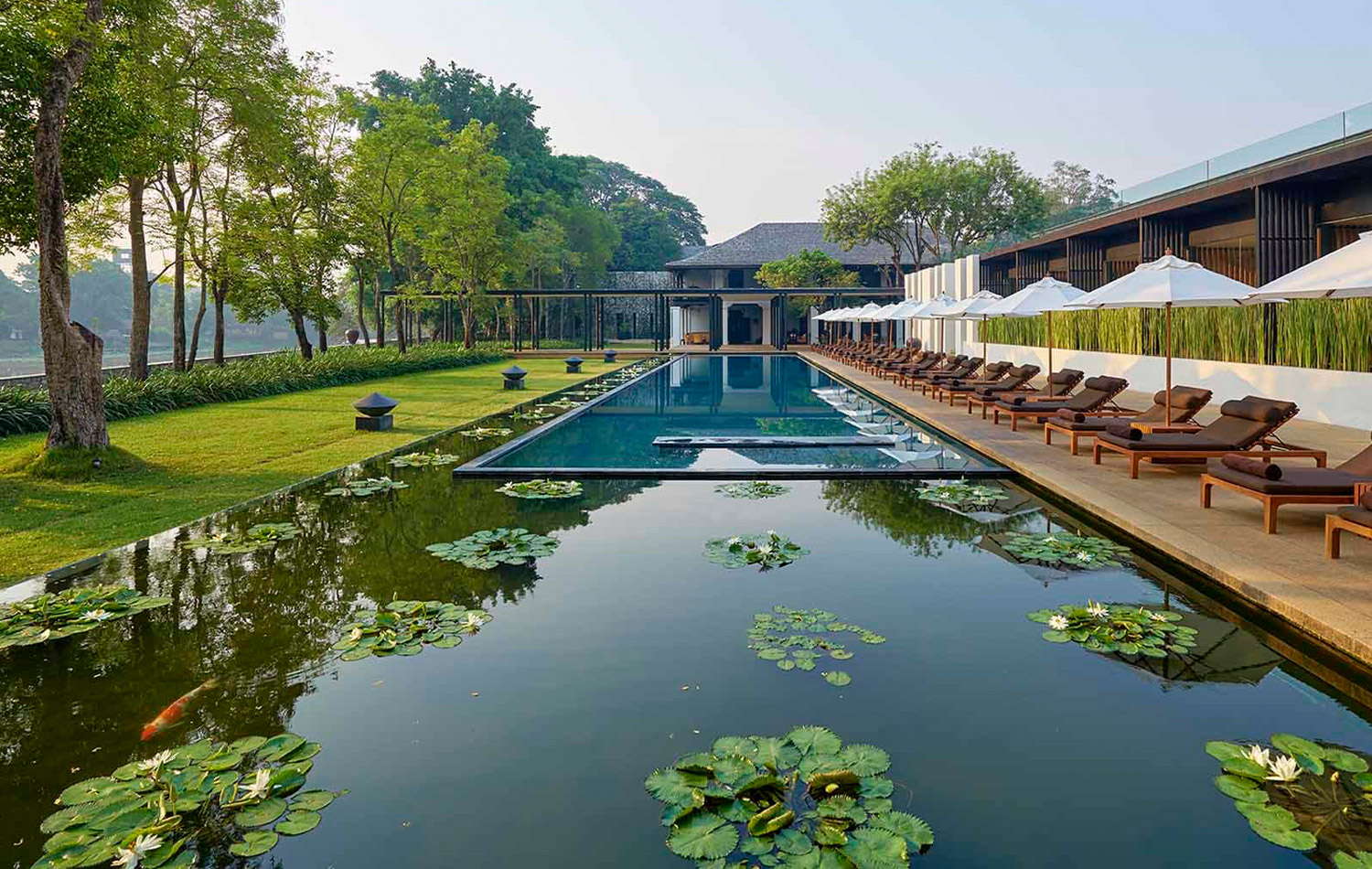 With three lush acres alongside the Chao Phraya River, and a pool deck positioned above it, The Siam Hotel is a sexy retreat and hidden gem within Bangkok. The Bill Bensley boutique hotel features 28 suites in its main building, along with 10 villas. Loads of antiques, as well as vintage art and photographs, can be found across the property, with black and white color schemes offset by deep purple accents and lush greenery. Treatments at the Opium Spa will help you unwind as much as the name implies. — JE