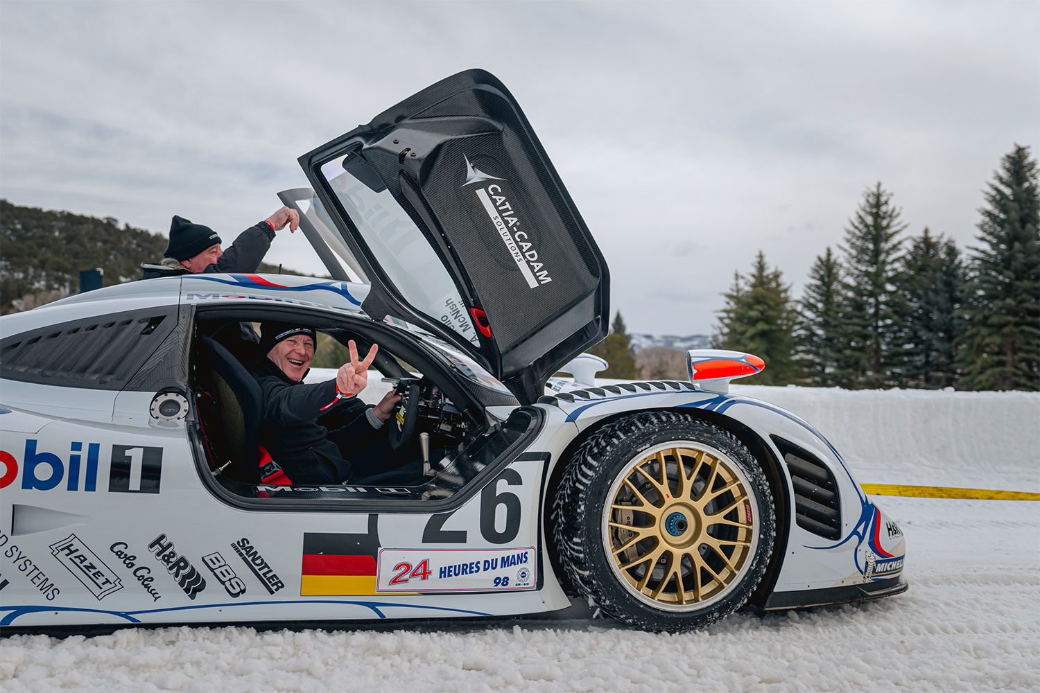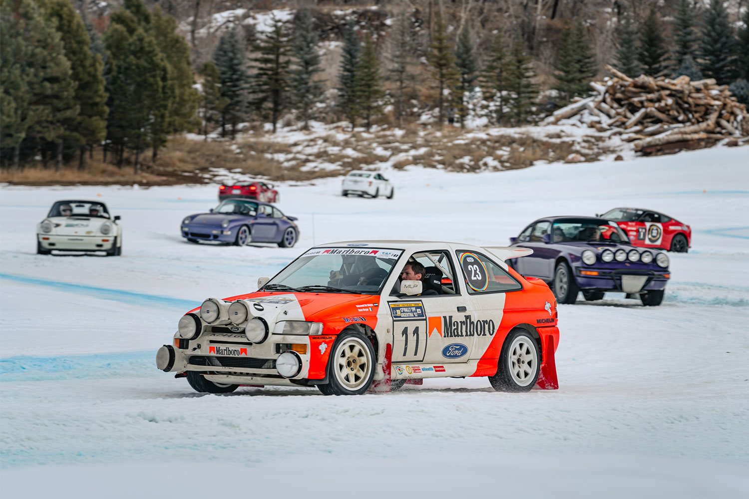 The winter sun is cresting the Rockies just as it has every day for millennia, casting crisp, clear light across Aspen Valley in Colorado. This time though, the snow-dappled landscape is ringing with the wailing soundtrack of dozens of vintage and modern race engines. The lineup is a kaleidoscope of manic moments in motorsports history, from slinky ‘50s sports cars to uncorked ‘80s Group B rally cars to exuberant ‘90s exotics to the crown jewel, the Porsche GT1 racer that won Le Mans in 1998. The personalities are also larger than life, everyone from racer and Luftgekühlt founder Patrick Long to Andial co-founder Dieter Inzenhofer to Stéphane Ortelli, one of the three drivers who took the GT1 to victory at Le Mans. The cars, most of them outrageously valuable, some of them outright priceless, rip around a sinuous ice course spraying fresh powder as they slide through corners, sometimes hooking up with lurid drifts, sometimes spinning out and working their way back on track.
