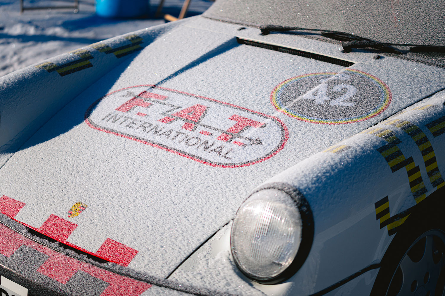 F.A.T. International, short for Française Allemand Transit, is a now-defunct French logistics firm that sponsored some of the most glamourous races in Europe during the golden era of motorsports. It’s no wonder Ferdi has rosy associations with the name, and eventually co-opted the counterintuitively attractive acronym by attaching it to his event (which was previously called the GP Ice Race). Ice racing looms large in the Porsche family, not to mention in Europe at large. The so-called Ferdinand Porsche Memorial Ice Races persisted from 1952 to 1973, and a 21st birthday ice-driving trip to Finland from his father sparked the inspiration to relaunch a reimagined version of the event in 2019. Thanks to seductive imagery beamed across FOMO-inspiring social media feeds, F.A.T. became a thing again, linking a long-lost livery with a fantastical cavalcade of ice-frosted cars and beautiful people.