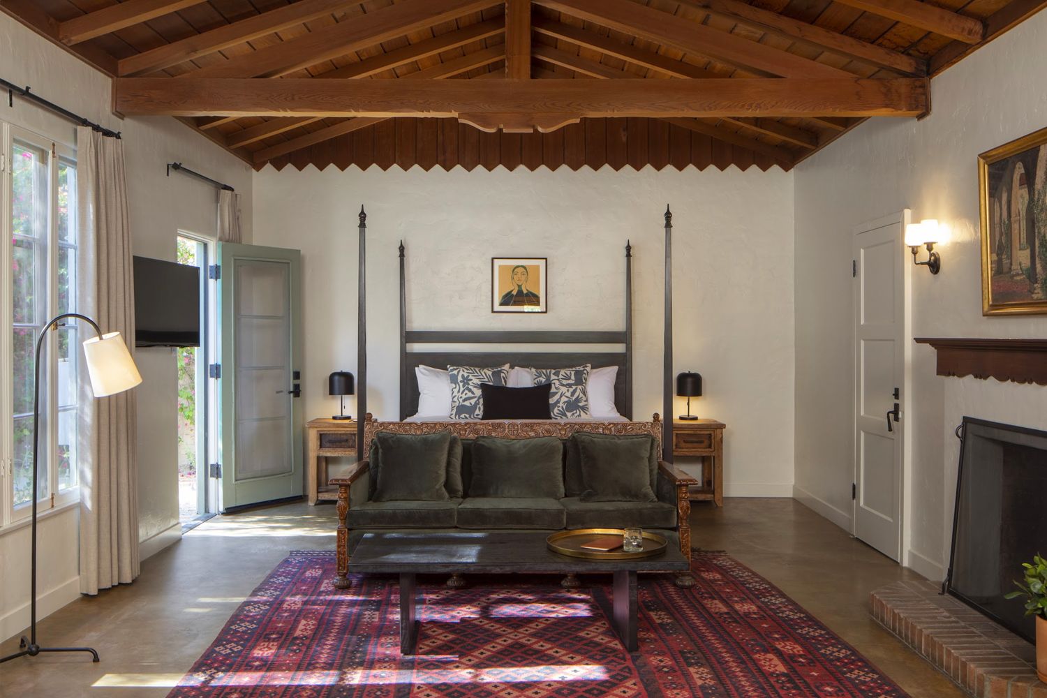 One of a handful of documented adobes in Palm Springs, Schneider says the Adobe House and Harriet’s Cottage are two of the most requested accommodations. “I love the Adobe the most, you just walk in and feel all of the history, but the Olympic Cottage and Winter’s House are great too, and I love the studios around the kidney-shaped pool. I don’t think there’s a bad room here, but something intriguing about the property is you can come back and experience it a little differently every time. It’s not cookie-cutter the way that a lot of hotels are.”
