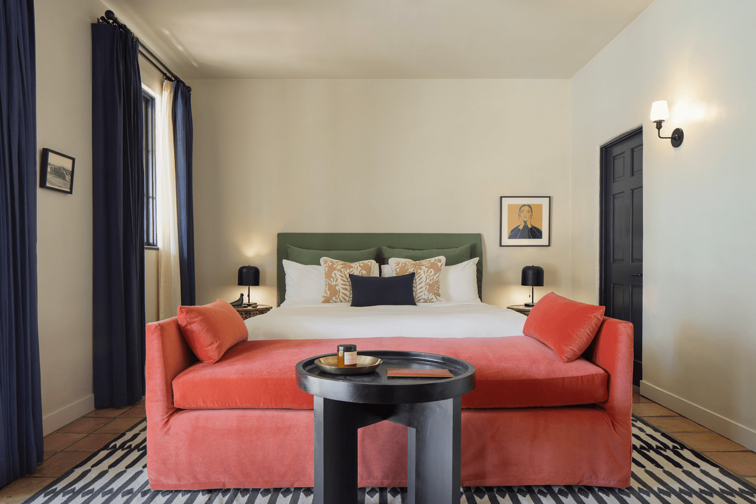 Casa Cody’s eclectic accommodations are dotted across four separate parcels but became unified in 1988 and received a Class 1 historic site distinction by the Palm Springs City Council two decades later. Architectural styles range from adobe hacienda and Spanish Colonial revival to a prefabricated cottage initially built to house athletes for the 1932 Los Angeles Summer Olympics. Schneider says part of Casa Cody’s charm and enduring spirit is the quirky melange of buildings that all came along at different times. Setting out to preserve as many historical details as possible while unifying the exterior façades and modernizing the guest rooms, Casetta Group worked with Venice Beach architecture and design firm Electric Bowery to transform the hotel with sensitive upgrades and considered new-look interiors.