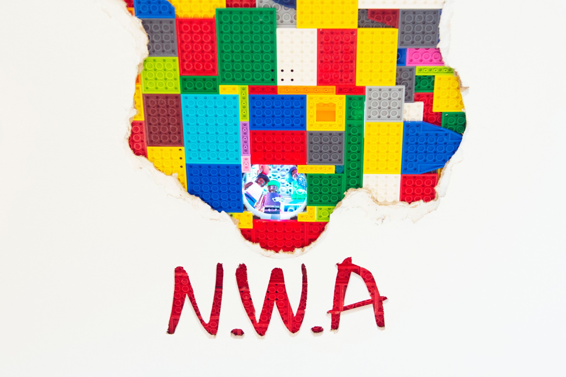 Part of a Lego wall installation made by artist Dante Dentoni. It features some of Grutman’s favorite things: a Lego version of his yacht, as well as scenes inspired by 2 Live Crew and N.W.A.