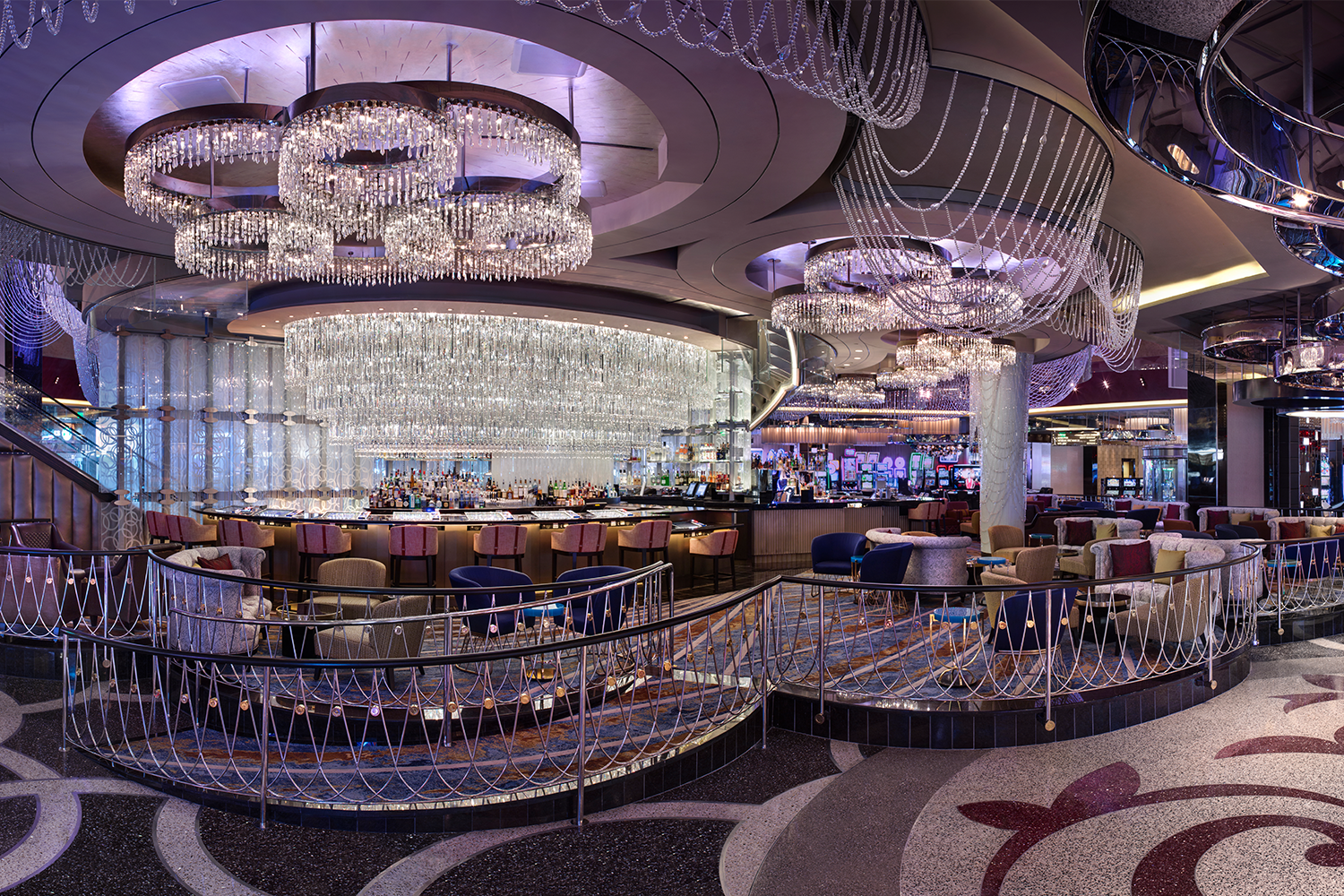 The first place you should grab a cocktail when you arrive is situated beneath the Cosmopolitan’s stupendous chandelier, aptly named the Chandelier Bar. It’s a glitzy, three-story lounge offering a wide range of specialty cocktails. There’s nothing wrong with ordering the classics, but a particularly intriguing option is the “secret cocktail” they serve called the Verbena, which is garnished with a Szechuan button — an edible flower that leaves a tingling sensation on your tongue.