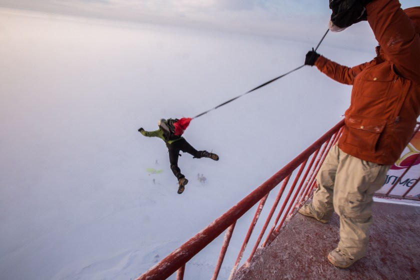This BASE jumper barely had time to pull his parachute after jumping from this 131-foot lighthouse in St. Petersburg, Russia. The lowest point at which one can deploy a parachute is considered to be around 100 feet.