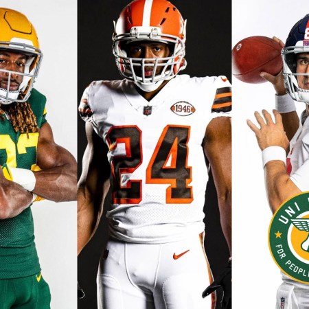 Now here’s a nice gift to find under the tree. There’s something appropriately festive about this uni matchup — it just feels right for the big holiday. Plus Boston’s design, with its green typography on the green base color, recalls the 2012 “Big Color” debacle, so there’s even a uni-nostalgia factor. If there’s only one game you can watch on Saturday, this is the one, at least from a uniform perspective.