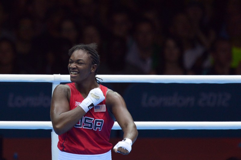 Claressa Shields of the USA celebrates defeating Nadezda Torlopova of Russia to win gold during the women’s boxing Middleweight final of the 2012 London Olympic Games at the ExCel Arena August 9, 2012, in London. (ALBERTO PIZZOLI/AFP/GettyImages)