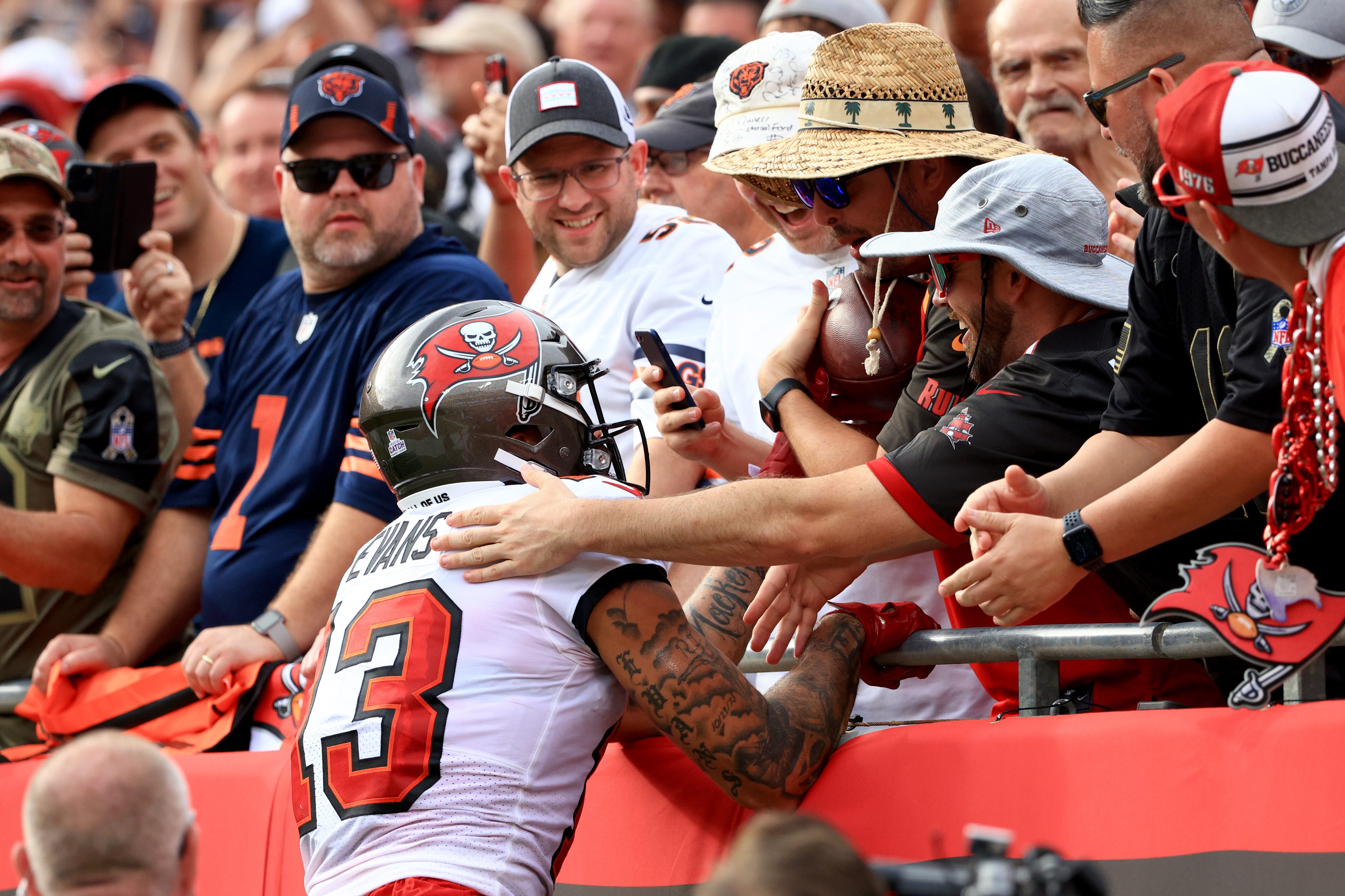 Unbeknownst to him at the time, Mike Evans caught Tom Brady’s 600th touchdown pass as the Buccaneers were thrashing the Chicago Bears 38-3 in Tampa Bay on Sunday afternoon.