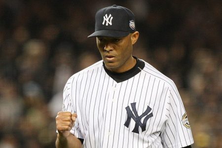The Panama native was a thirteen-time all-star and five-time World Series champion (four as the team’s closer and one, in 1996, as the set-up man for closer John Wetteland). Rivera holds the major league record for most career saves, 652, and finished in the top three in the Cy Young Award voting four times. And it was all done with essentially one pitch, his signature cut fastball.