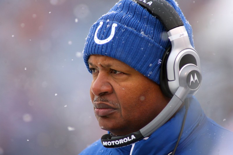 Fired: Head Coach Jim Caldwell. Here he of the Indianapolis Colts looks on from the sideline during their NFL game against the Buffalo Bills at Ralph Wilson Stadium on January 3, 2010, in Orchard Park, New York. The Bills defeated the Colts 30-7. (Rick Stewart/Getty Images)