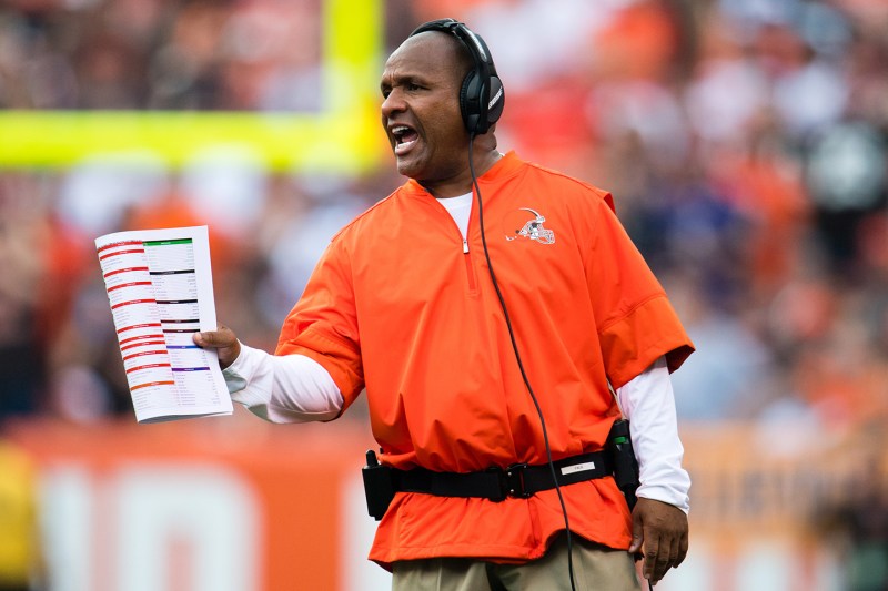 Will stay: Head coach Hue Jackson of the Cleveland Browns. Here, he yells to his players during the first quarter against the Baltimore Ravens at FirstEnergy Stadium on September 18, 2016, in Cleveland, Ohio. (Jason Miller/Getty Images)