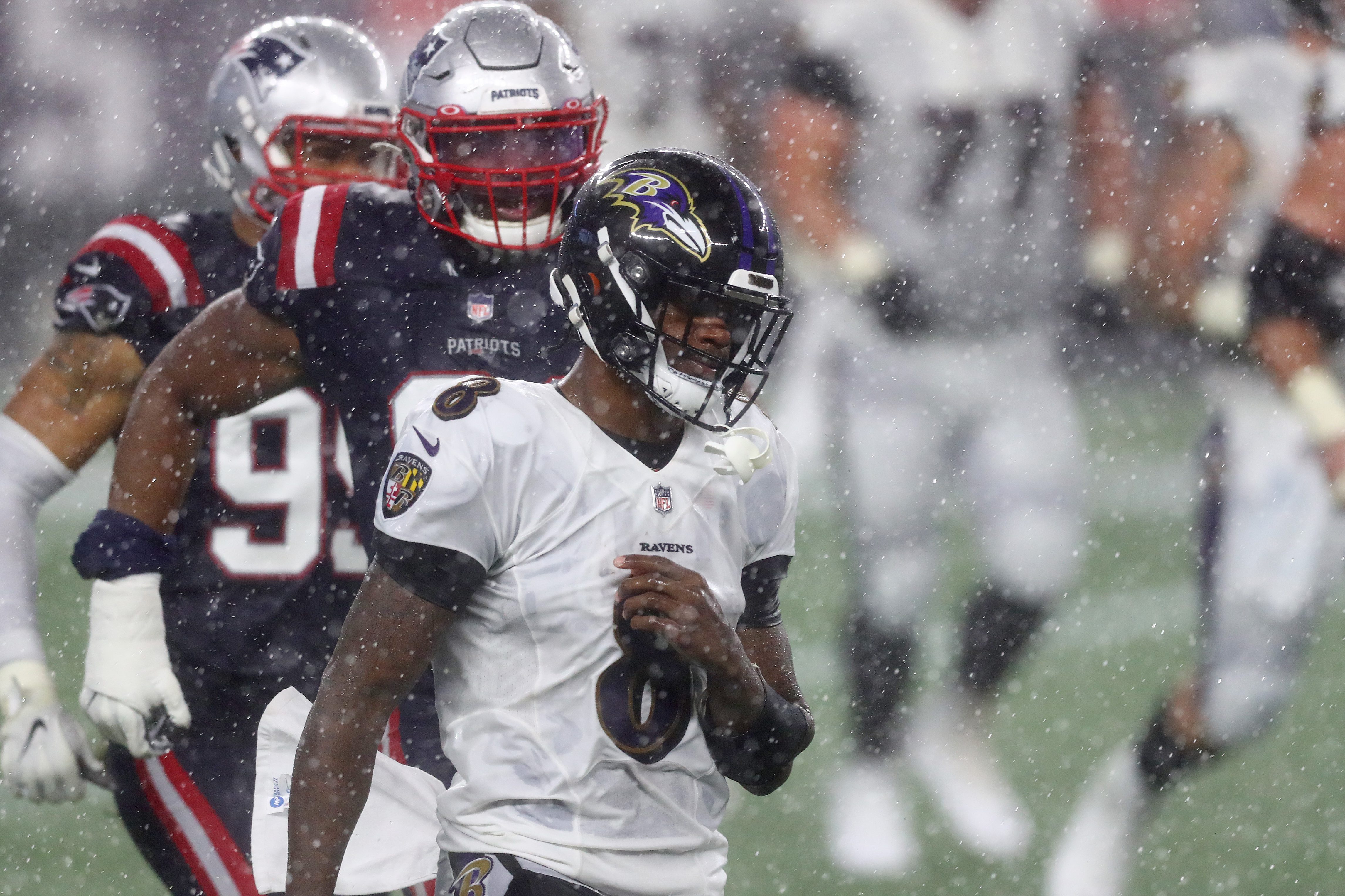 Jackson and the Baltimore offense did have the ball in the game’s final moments with a chance to tie or take the lead, but the rain made it nearly impossible and the Patriots were able to hold on for the win.