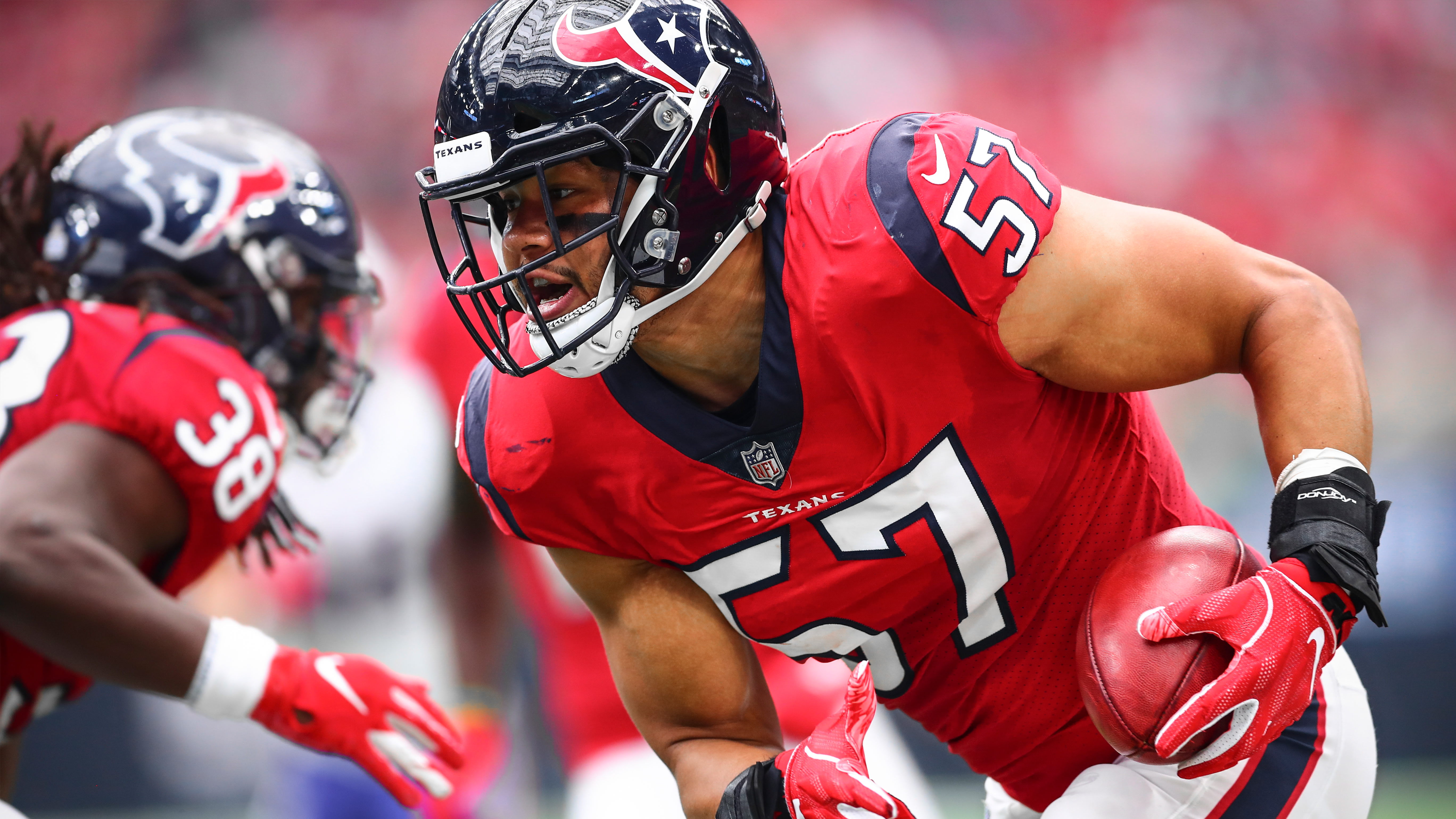 Although the Texans haven’t yet shared their game-by-game uniform schedule, they’ve announced their “gameday themes,” which we can use to extrapolate some of their uni choices. For example, the season opener against the Jags on Sept. 12 is the annual “Liberty White Out” game, so the Texans will presumably be wearing white at home on that date. “Battle Red Day” is Dec. 5, so the team will wear their red alternate jerseys against the Colts. And Dec. 26 is “Deep Steel Sunday,” which means they’ll dust off their solid-navy Color Rush uniforms for their game against the Chargers.