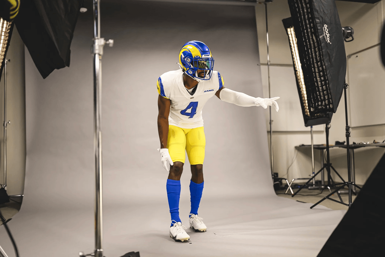 This jersey won’t replace the gray/bone design, at least not for now, but it adds a new option to the Rams’ mix-and-match combos. It will be worn for three games, all at night: Sept. 12 (the Sunday-night season opener at home against the Bears), Nov. 7 (Sunday night at home against the Titans) and Nov. 15 (Monday night on the road against the 49ers).