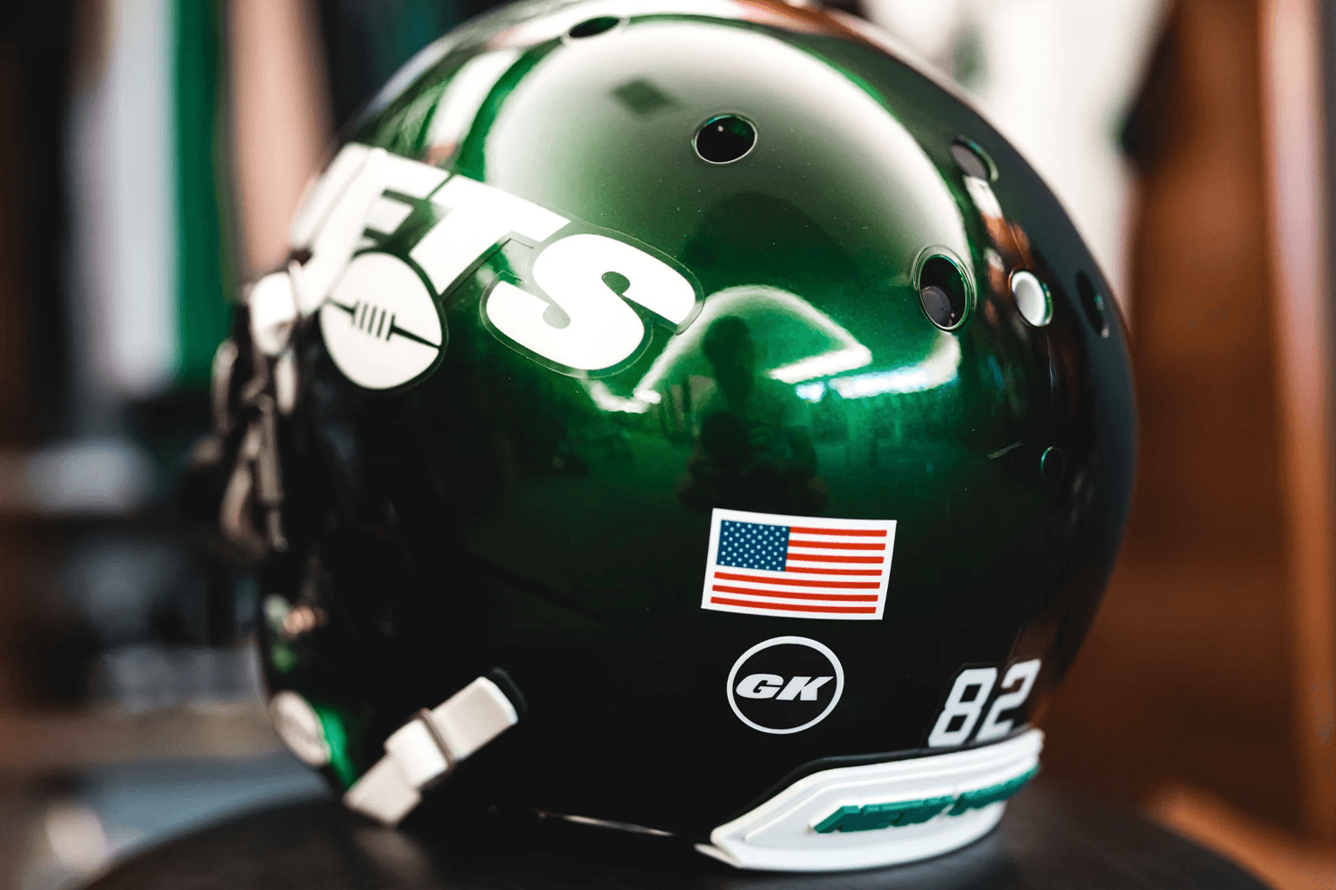 The Jets have added a “GK” memorial decal for assistant coach Greg Knapp, who was recently killed after being struck by a car while bicycling.
