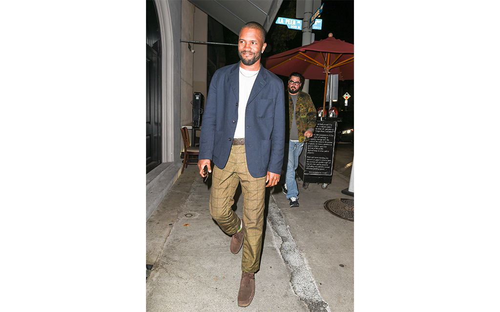 Any time the notoriously reclusive Frank Ocean deigns to make a public appearance, it’s a big deal. Because he reveals so little of himself, each outing serves as a fresh reminder for just how good his style is, and the range he possesses. The same person who wore see-through sequined Gucci pants for his 30th birthday can just as easily wear the more classic look you see above. It’s one that’s attainable even for us mere mortals, and will never fail to go out of style because it’s comprised of timeless staples: a navy blazer, white tee, subtly patterned pants and brown leather Wallabees.