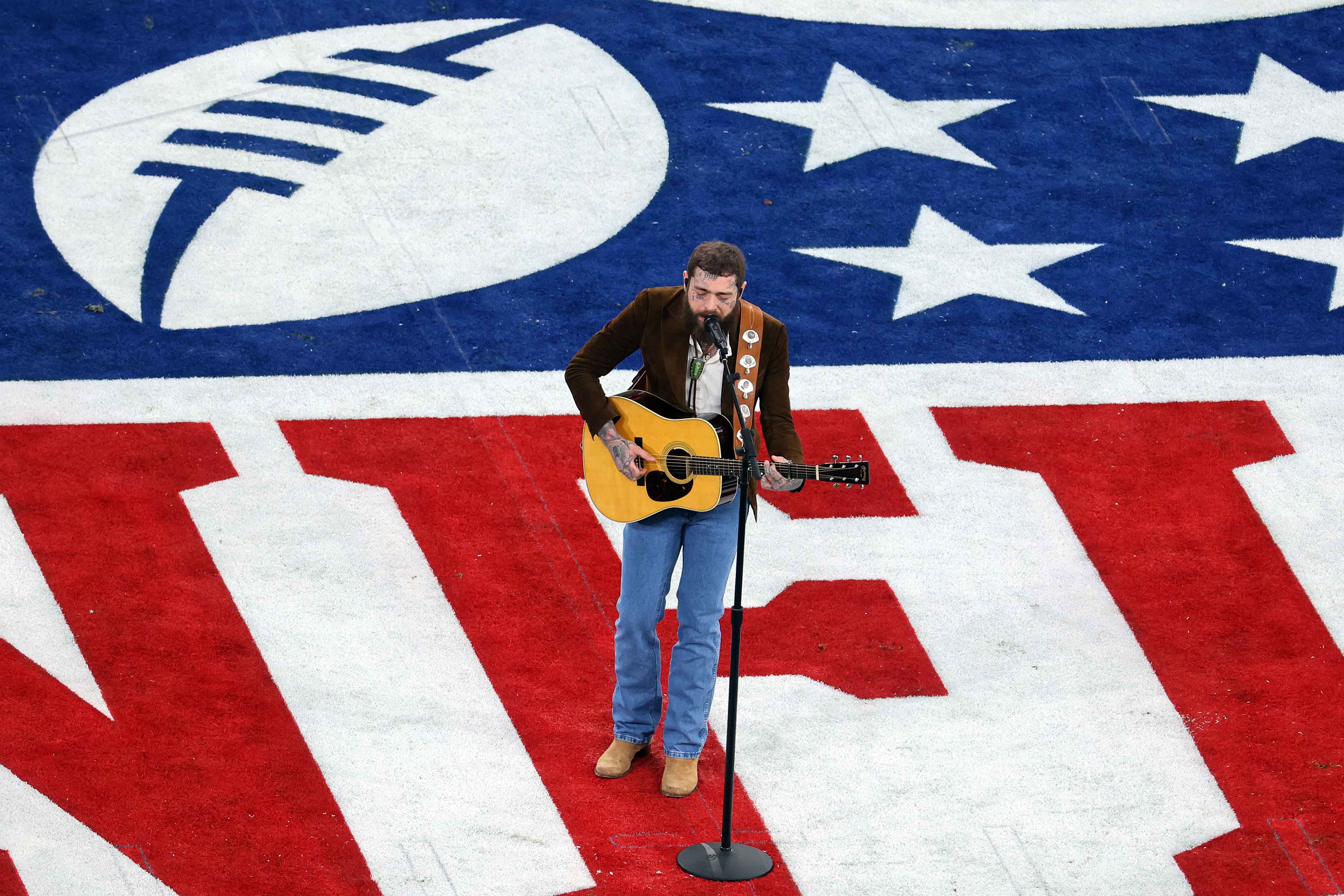 What’s more all-American than Post Malone performing at the Super Bowl? Post Malone performing at the Super Bowl in a pair of $33 Wrangler jeans and a turquoise bolo tie.