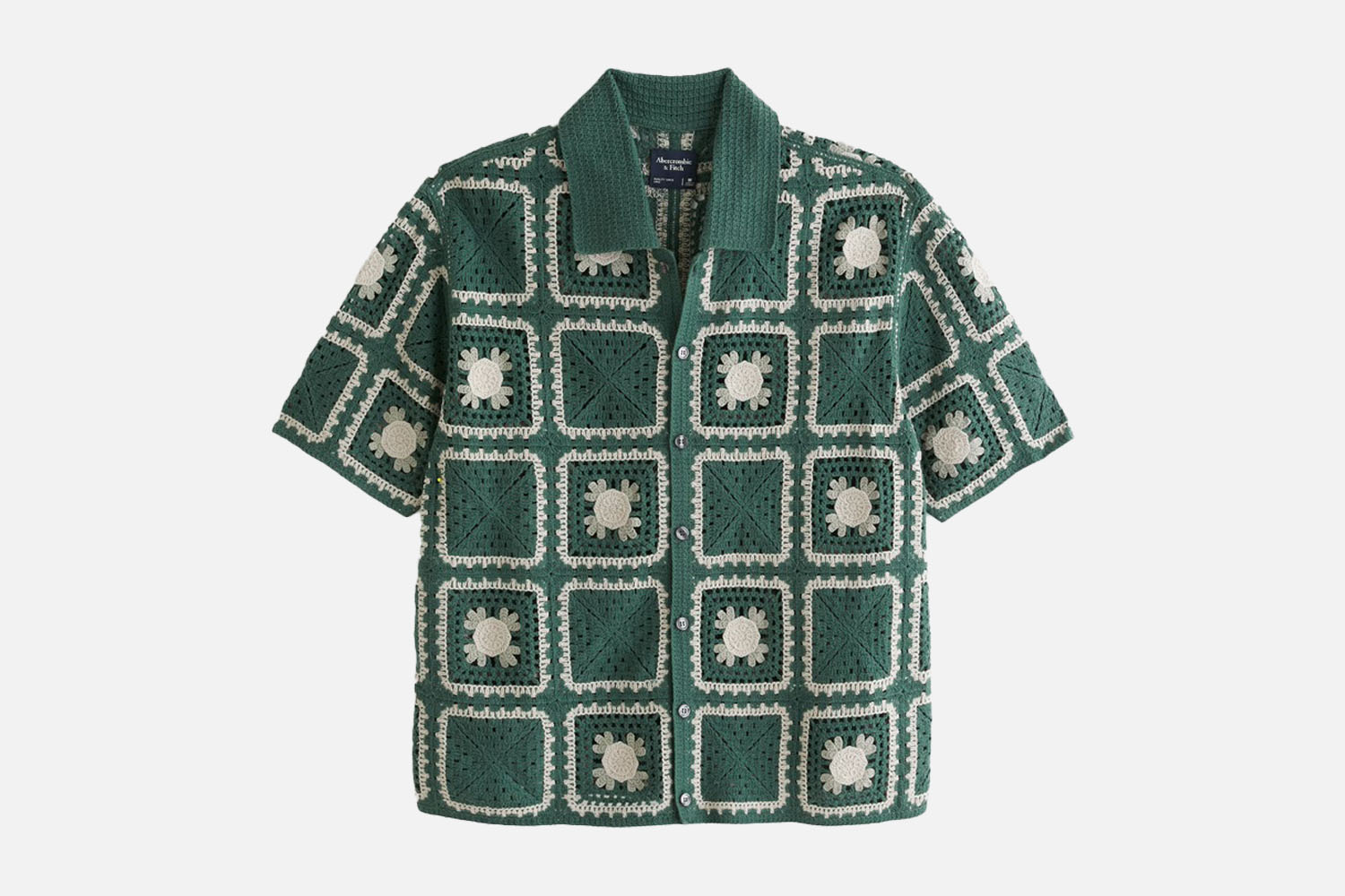 The Down-to-Clown Knit Polo: Abercrombie & Fitch Crochet-Style Button-Through Sweater Polo, $90