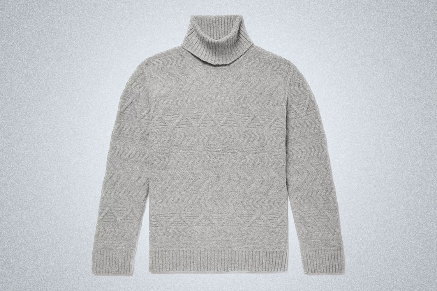 While the fisherman sweaters of today often opt for more comfortable wool or cotton blends, the same qualities that made the garment so desirable over 100 years ago — warm, hardy, chunky — remain as relevant as ever. And while the style has been majorly moored to the metropolitan, its robust origins make it more than a match for bitter winter days. This time of year, you can spot the style in every Aspen ski chalet, at every “for your consideration” junket and on the back of every goddamn Kennedy around.