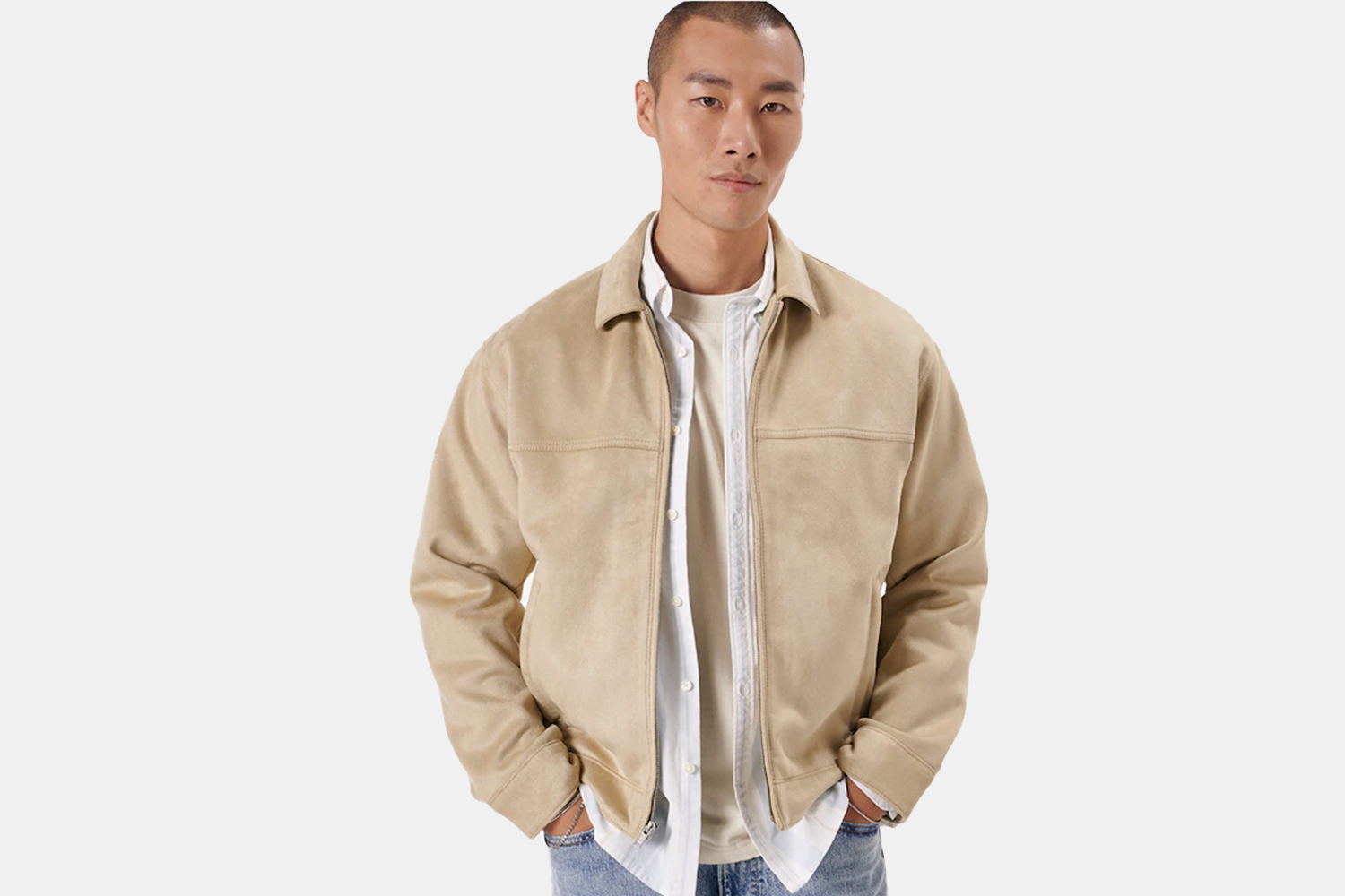 A vegan suede option that won’t break the bank, Abercrombie continues to impress with in-style output at an affordable price. This jacket combines all the things we love in outwear right now: a relaxed fit, an easy-zip design and wear-with-anything attitude.