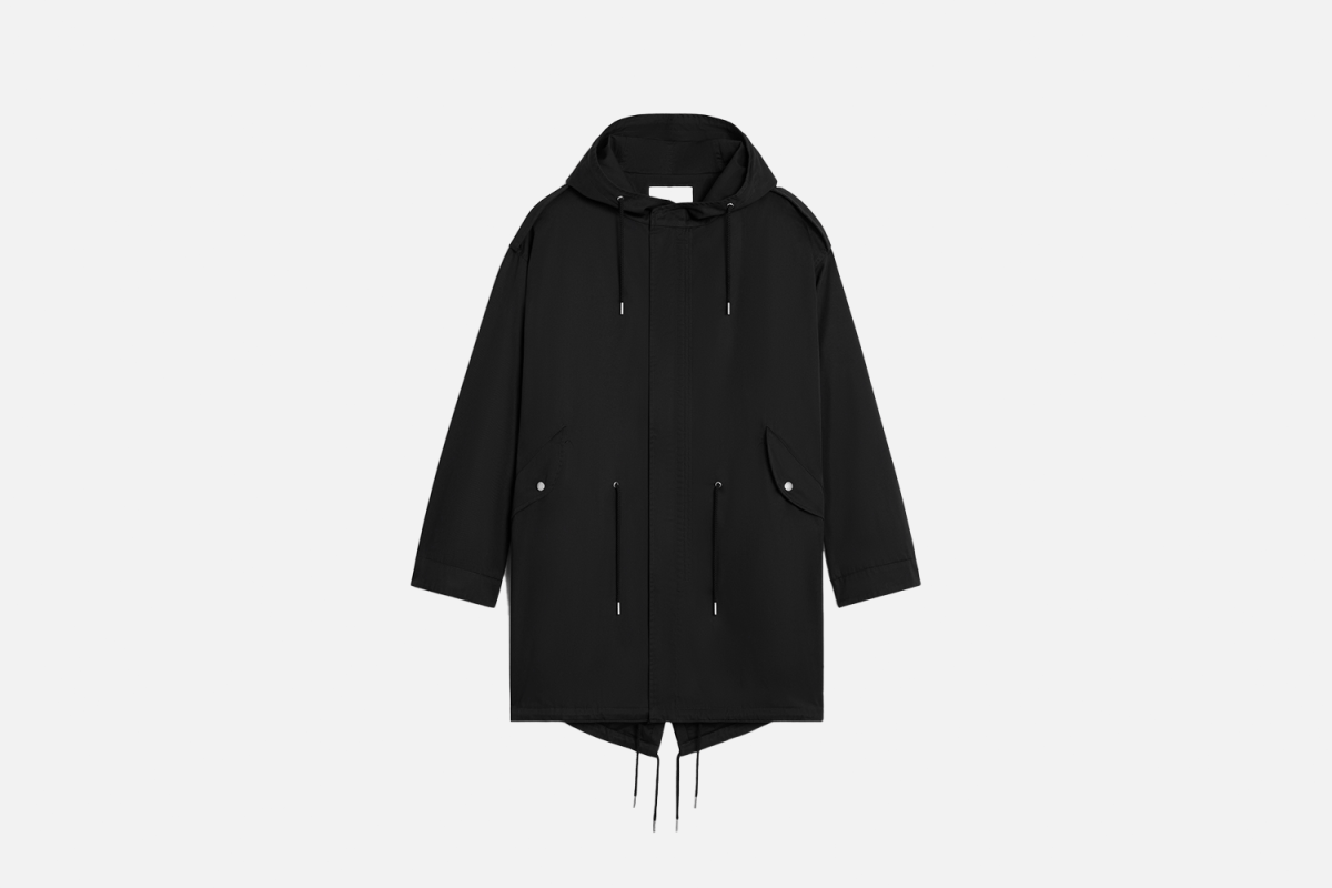 Celine delivers a chic, sleek and luxuriously rock ‘n’ roll spin on the classic fishtail parka. The devil is in the details of this garment. Made in Italy from technical cotton, it features a waistline with adjustable drawstrings, Celine Paris-engraved metal aglets, a high neck with a hood and additional drawstrings. And don’t let the logo deter you — it works here with the Parisian affiliation and ID. Because if you’re rocking this designer parka, you’ll want to flaunt it.