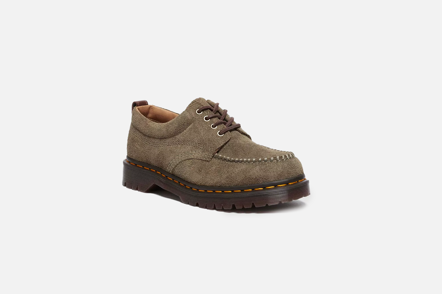 As noted in our suede shoe primer this past spring, there’s a clear shift toward a more handcrafted and casually elegant vibe in suede footwear. Hybrid models like moc toes, derbies and desert boots capture this laid-back, elevated, artisanal vibe. When I first saw the Lowell from Dr. Martens, the fresh moc toe style jumped out right away. Inspired by shoes once reserved for yacht decks and French formalwear, Dr. Martens designed the Lowell as a more refined option in the post-sneaker boom. It blends a classic aesthetic with a workwear heritage, all in very wearable rich leathers and suedes. While I admire all the colorways, the olive-green suede stands out for its rich and sophisticated hue.