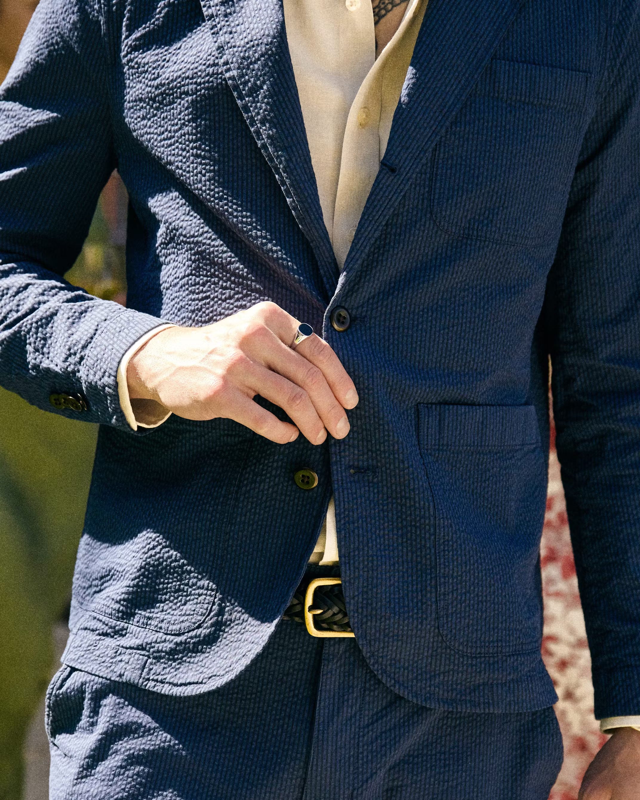 The brand's two-piece seersucker suiting is perfect for sweaty occasions