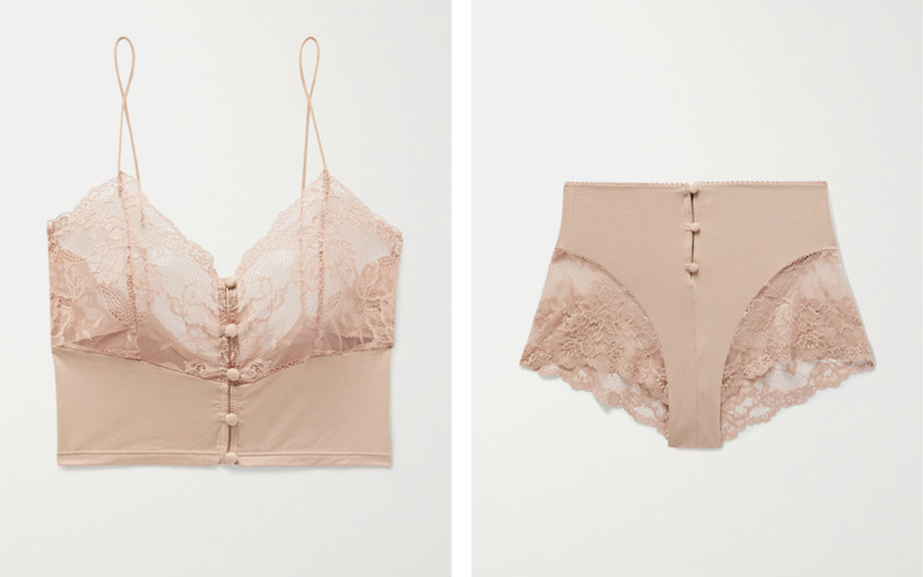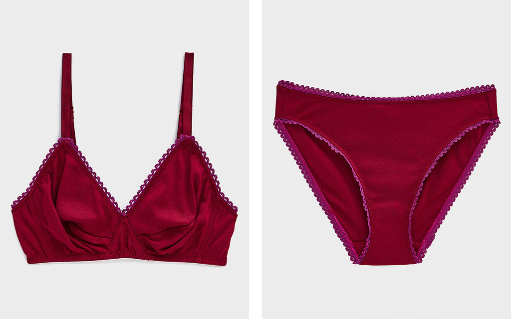 Lonely makes lingerie with comfort in mind, and this bralette and matching briefs are no different. The briefs are cut in a retro, high-waist silhouette, meaning they’ll look flattering on all body types, and the lace accents and antique-rose coloring lend it a delicate, feminine feel.